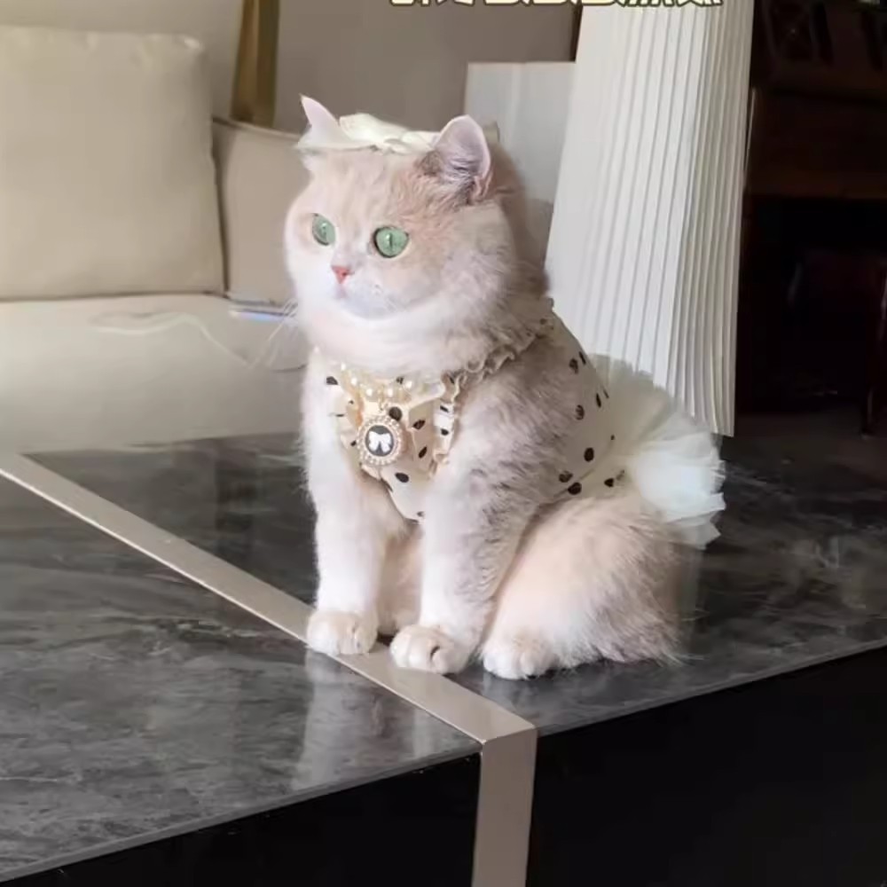 고양이 여름 옷, 흘러내림 방지, 귀여운 인 스타일 2025 새로운 공주 드레스, 골드 그라데이션 래그돌 고양이 스커트