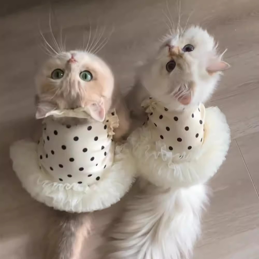 고양이 여름 옷, 흘러내림 방지, 귀여운 인 스타일 2025 새로운 공주 드레스, 골드 그라데이션 래그돌 고양이 스커트스토어 가기