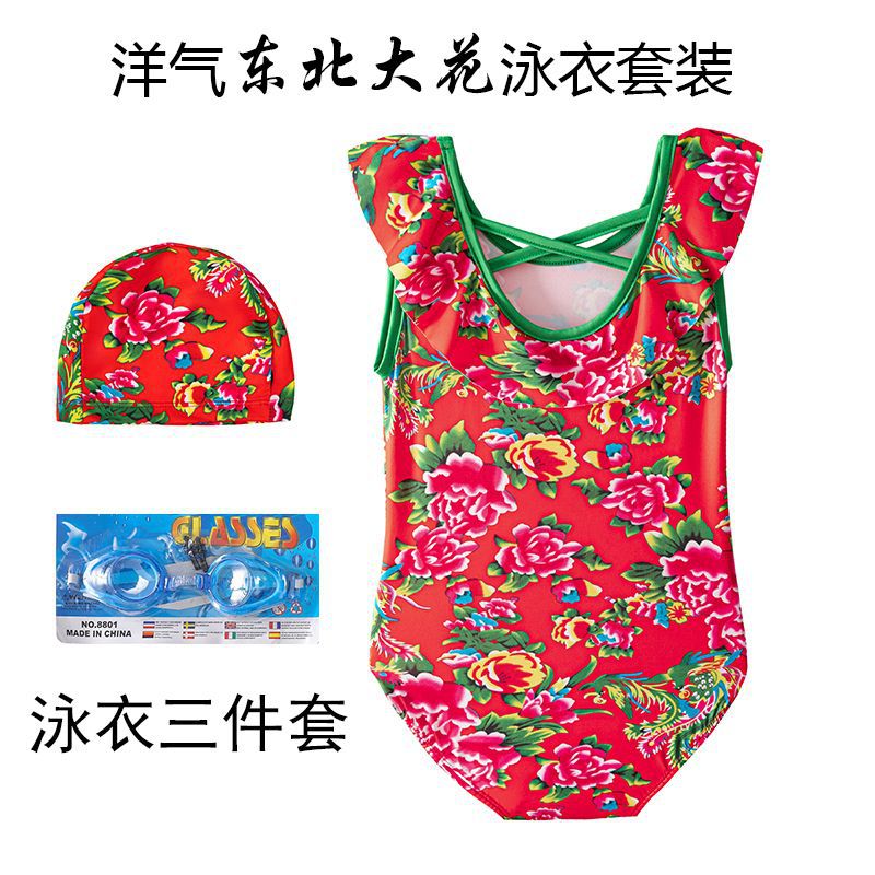 • 큰 꽃무늬 수영복, 수영 고글, 수영 모자
