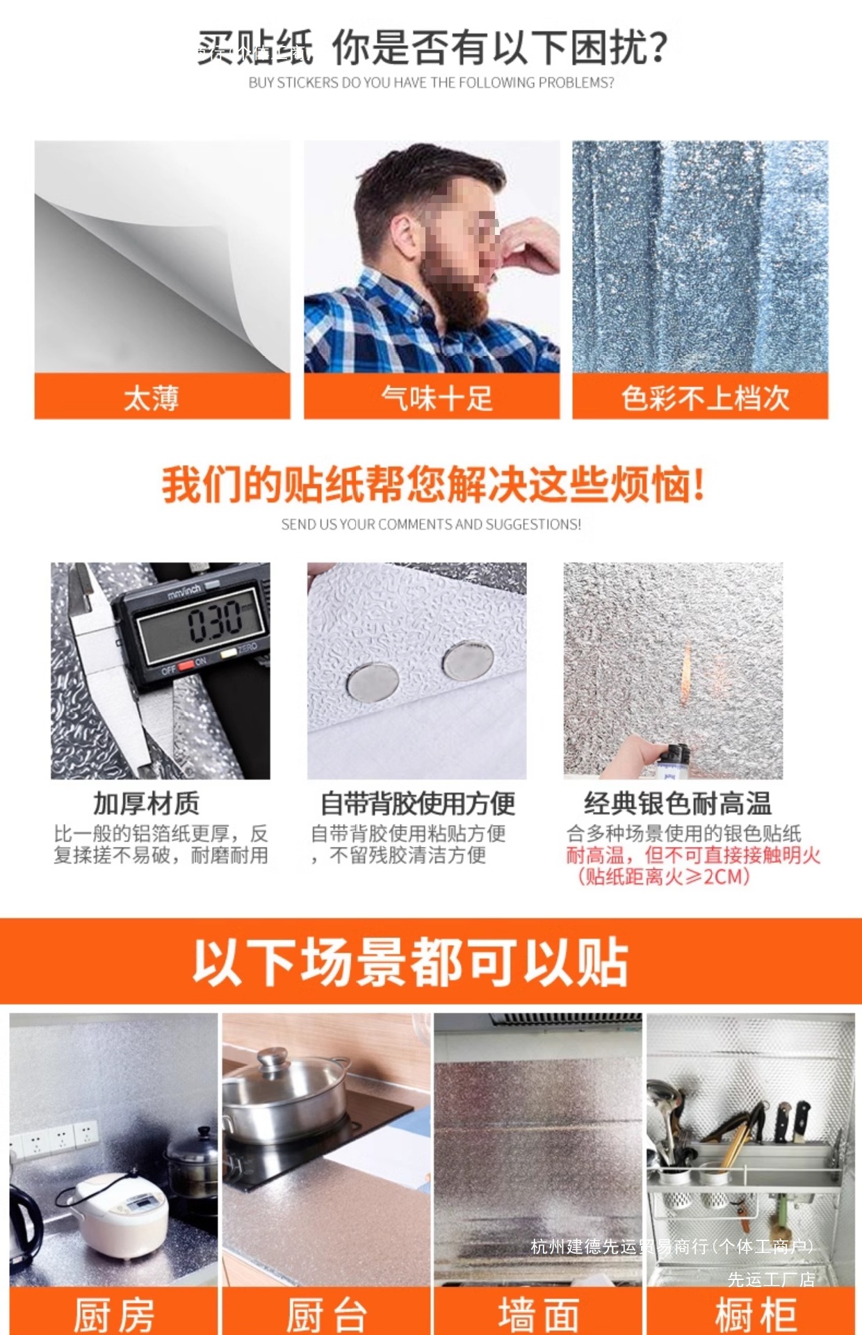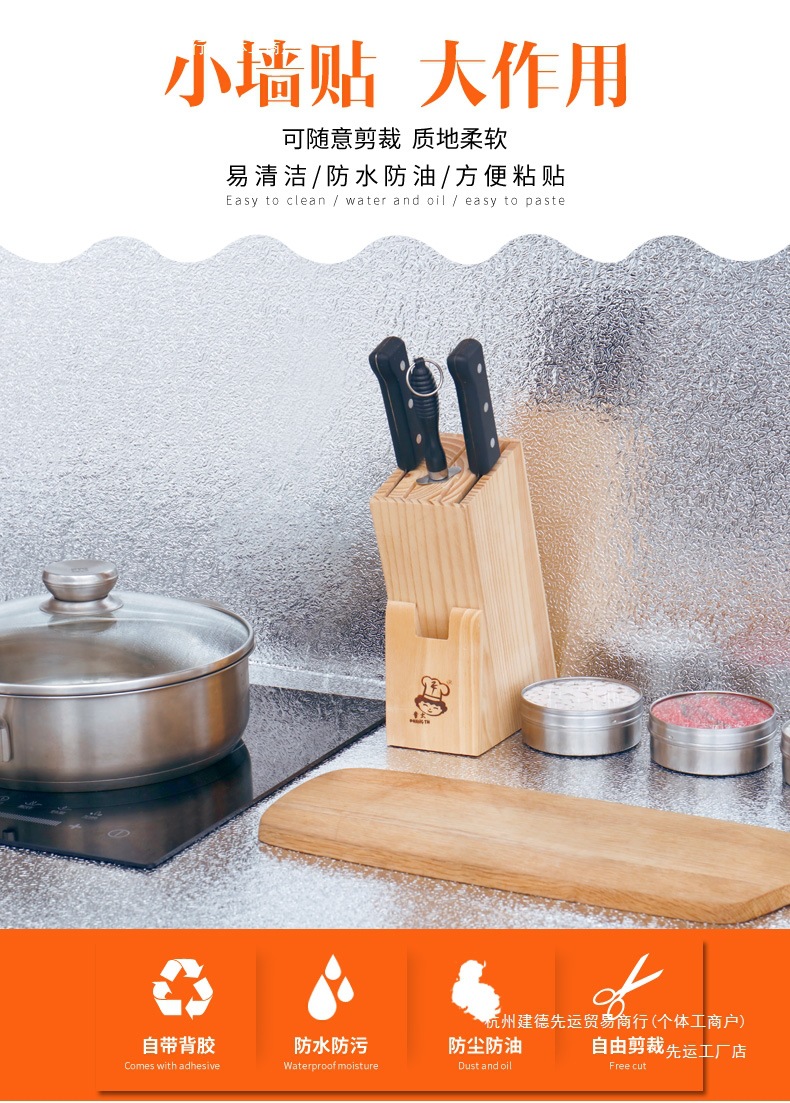 스토브 캐비닛 방수, 내화 및 고온 방지 벽지 레인지 후드 알루미늄 호일 주방용 자체 접착식 주방 방수 스티커스토어 가기