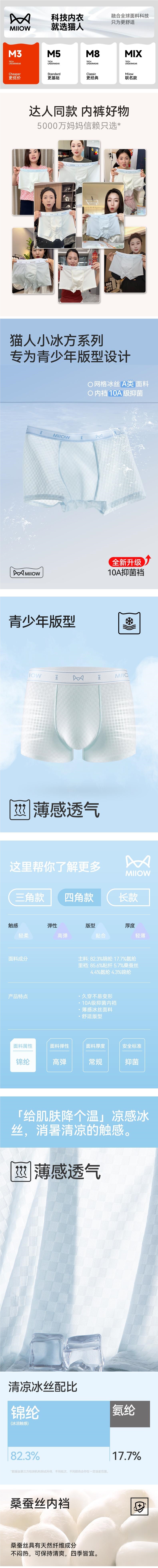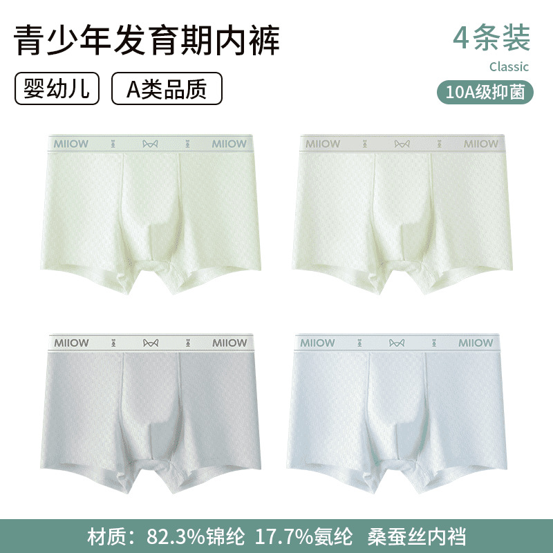 Catman Xiaobingshang 청소년 속옷 10A 뽕나무 실크 클래스 A 발달 기간 큰 어린이 남성용 얼음 실크 복서 팬티스토어 가기