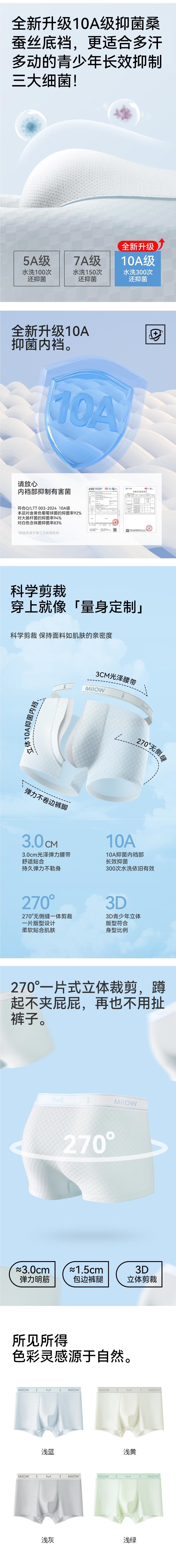 Catman Xiaobingshang 청소년 속옷 10A 뽕나무 실크 클래스 A 발달 기간 큰 어린이 남성용 얼음 실크 복서 팬티