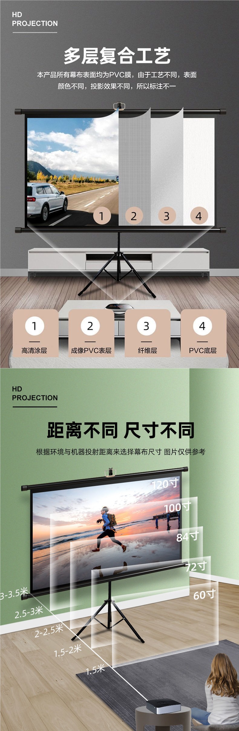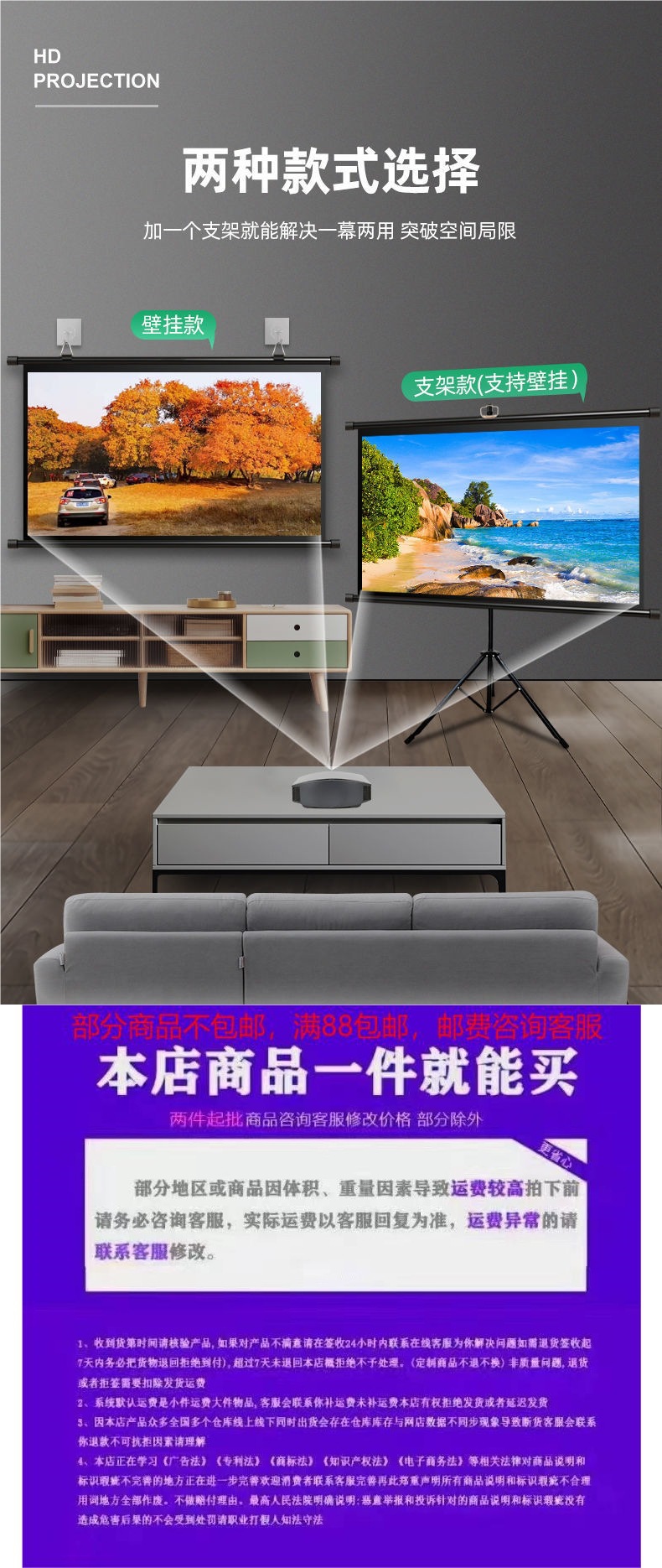 프로젝션 스크린 홈 100inch 스탠드 커튼 플로어 스탠딩 펀치 프리 스탠드 로드 야외 모바일 프로젝터 Meizhicheng스토어 가기