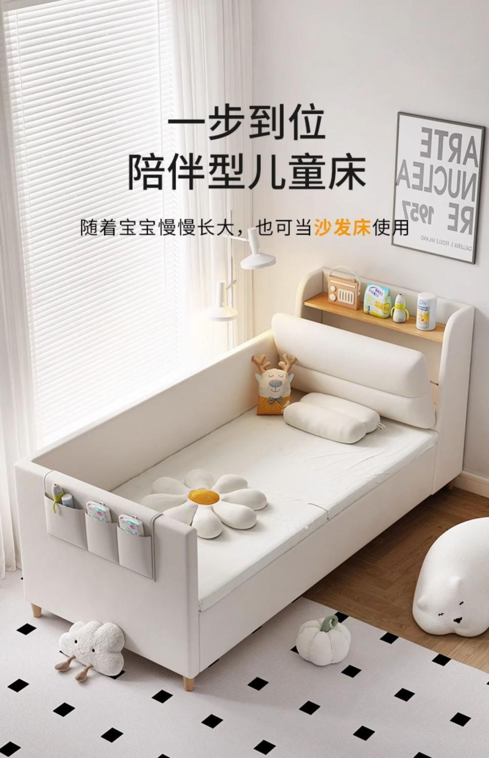 • 크림색 침대 옆 수납 공간 160*60 3면 가드 레일, 라텍스 코코넛 야자 탈부착 및 세탁 가능한 매트리스(전체 길이 180)