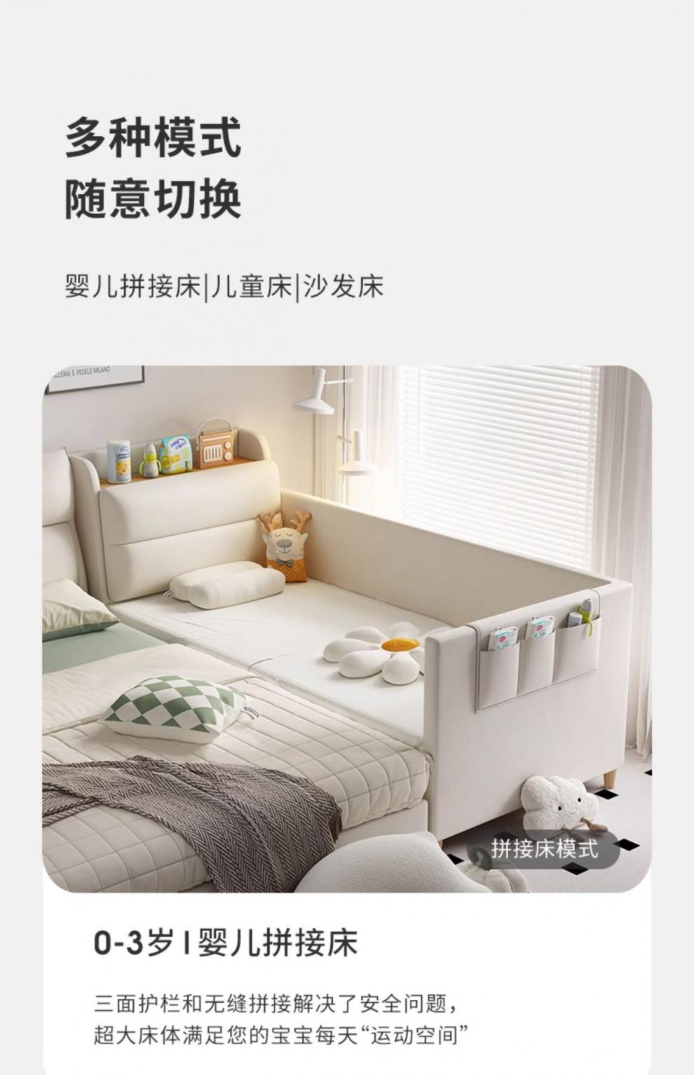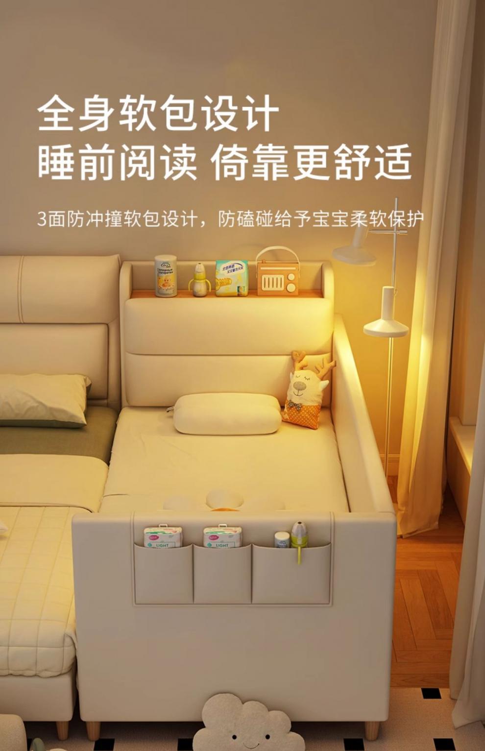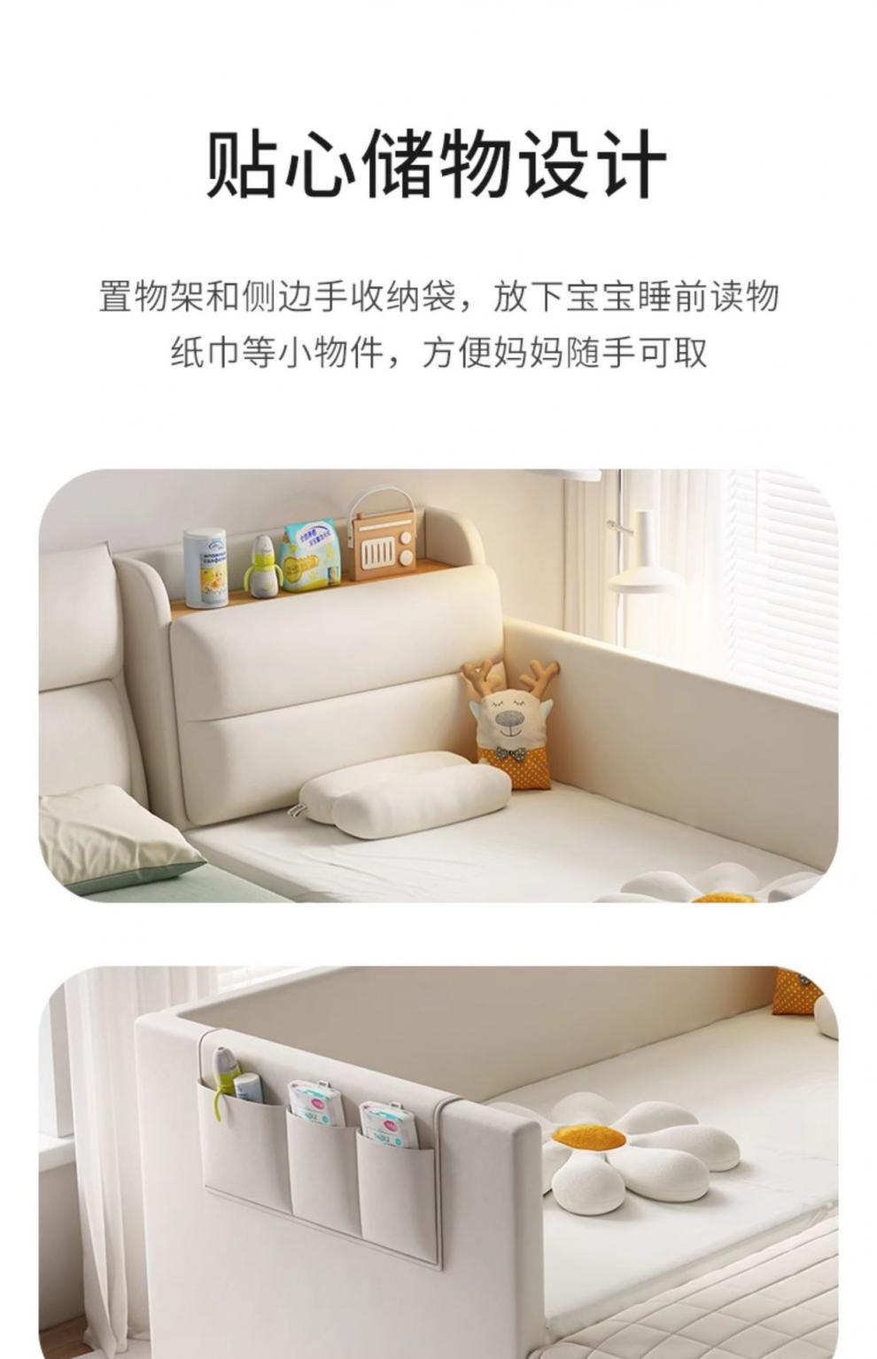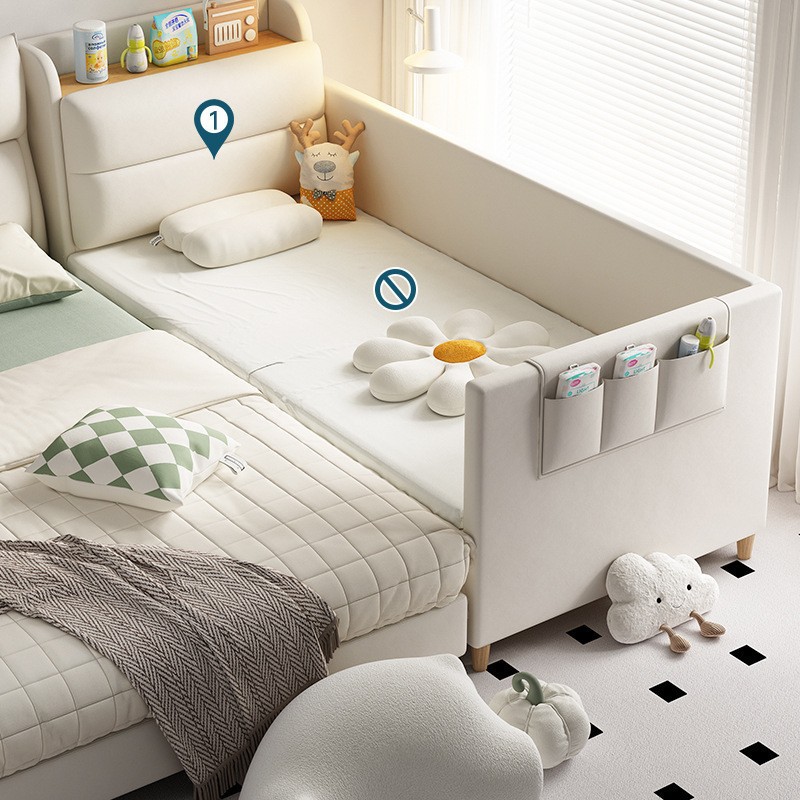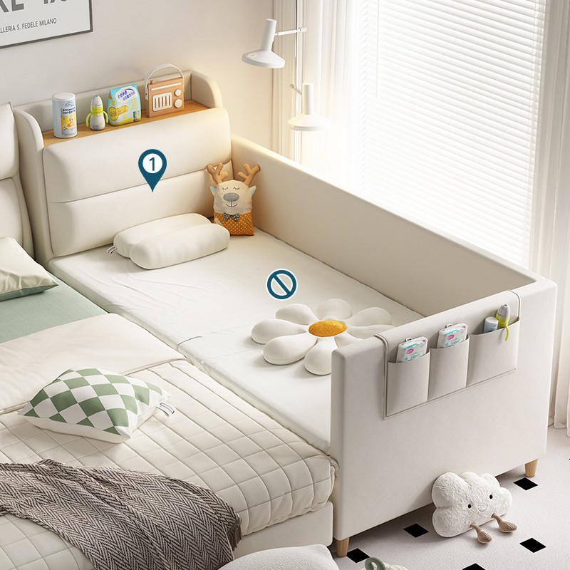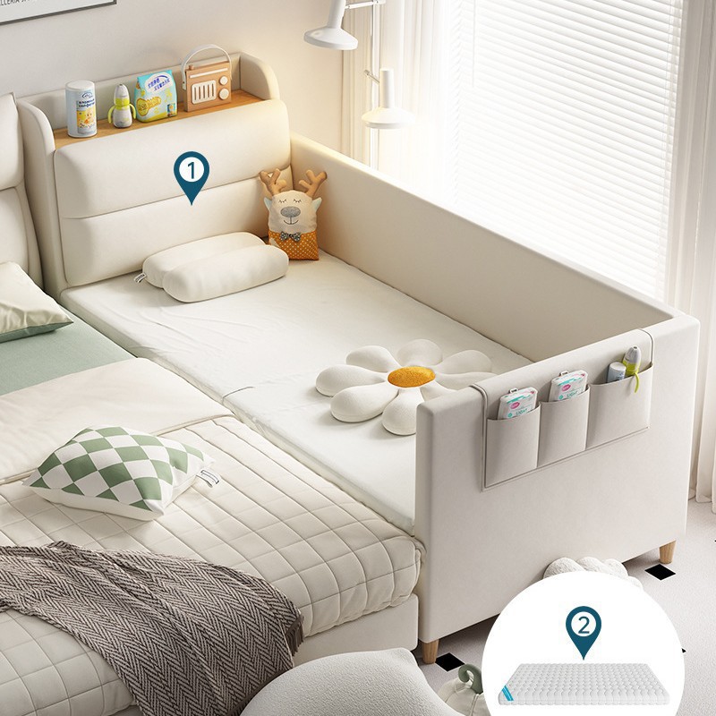 • 크림색 침대 옆 수납 공간 160*100 3면 가드 레일, 라텍스 코코넛 야자 탈부착 및 세탁 가능한 매트리스(전체 길이 180)