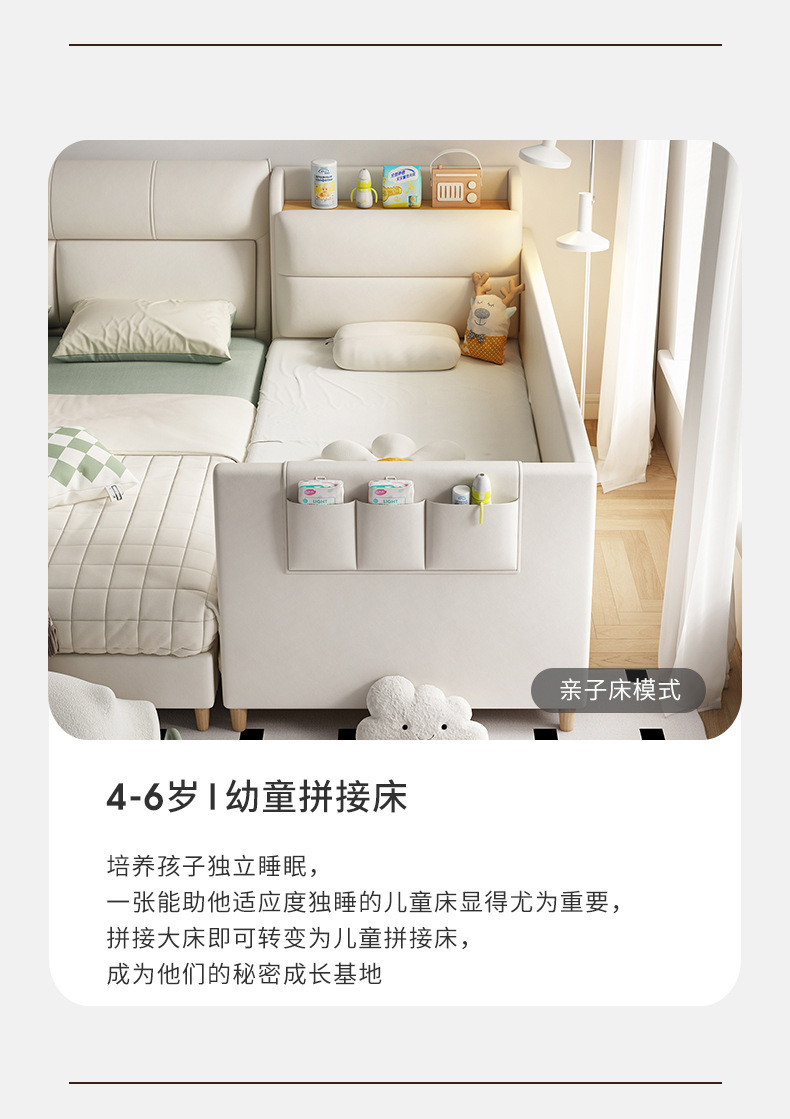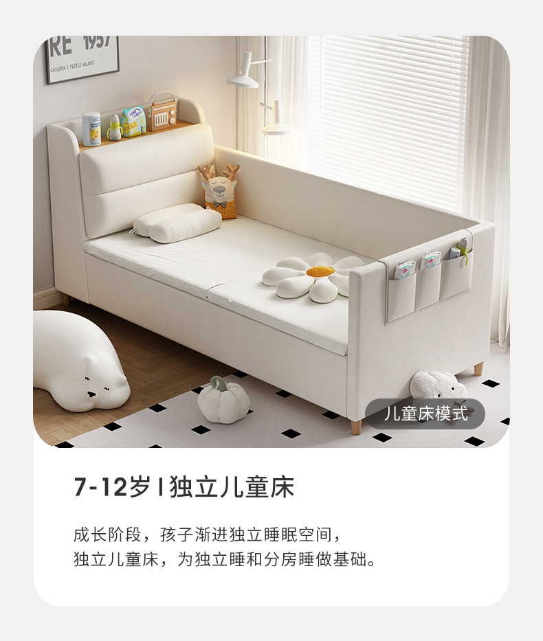 • 크림색 침대 옆 수납 공간 200*80 3면 가드 레일, 라텍스 코코넛 야자 탈부착 및 세탁 가능한 매트리스(전체 길이 220)