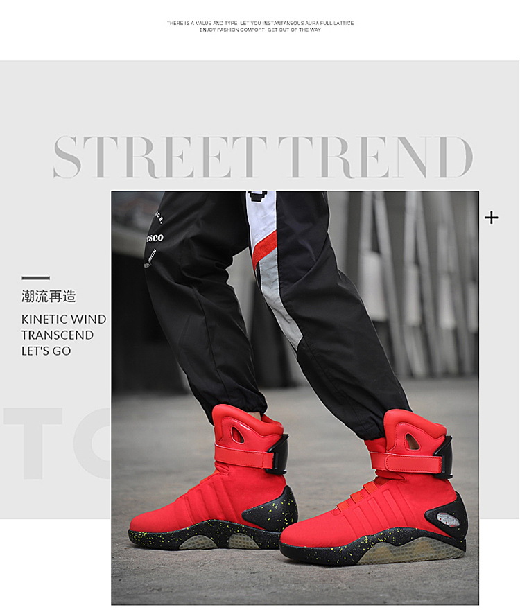 ♔ 미래 전사 하이 탑 운동화 USB 충전 유령 댄스 드림 남자 신발 미끄럼 방지 다채로운 야간 발광 농구 LED 조명