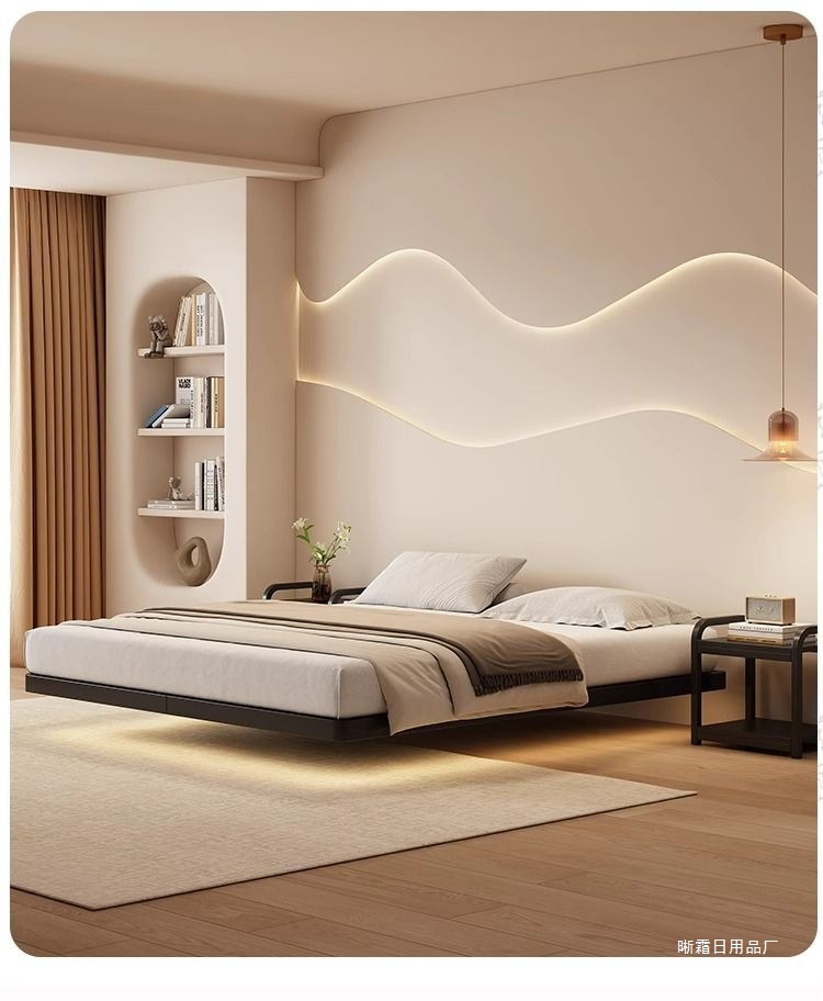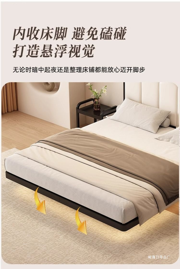 가정용 침실을 위한 철제 침대 더블 침대 침대 옆이 있는 현대적인 간단한 공중에 매달린 침대 두껍고 부드러운 패키지 공중에 매달린 침대 프레임스토어 가기