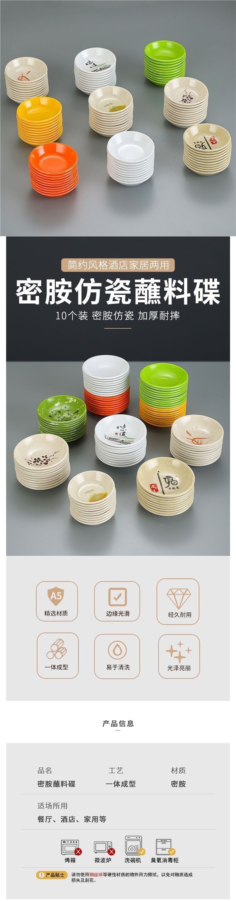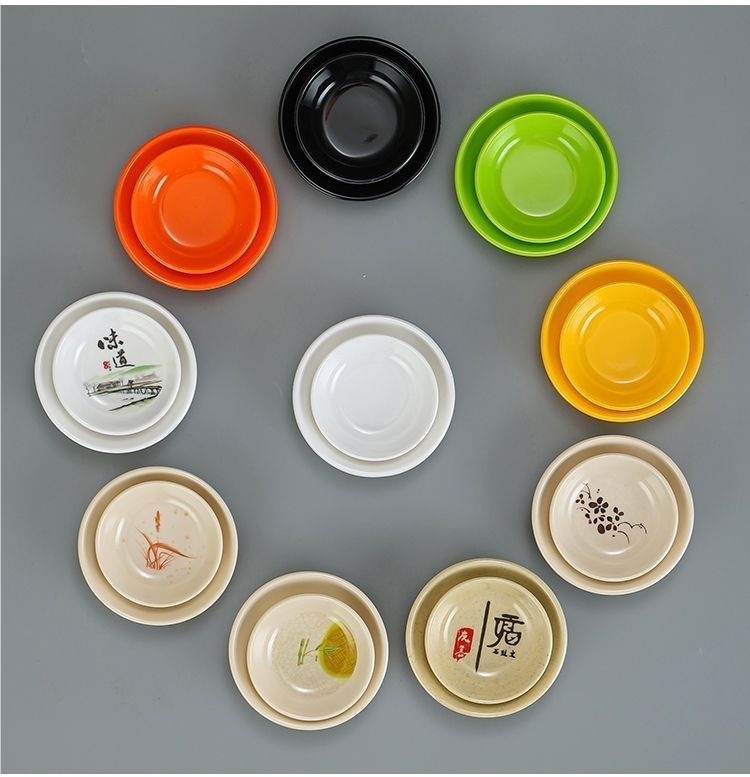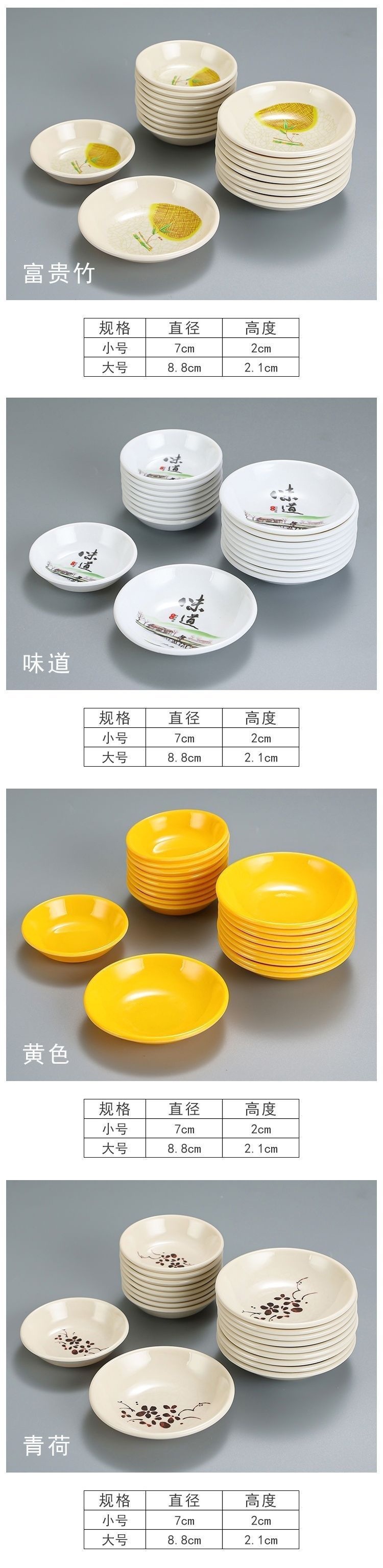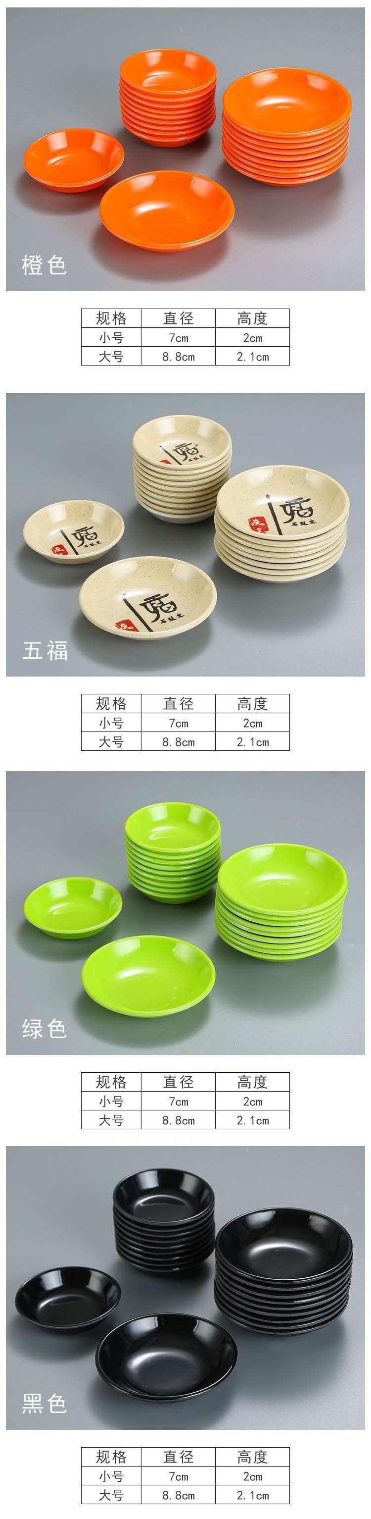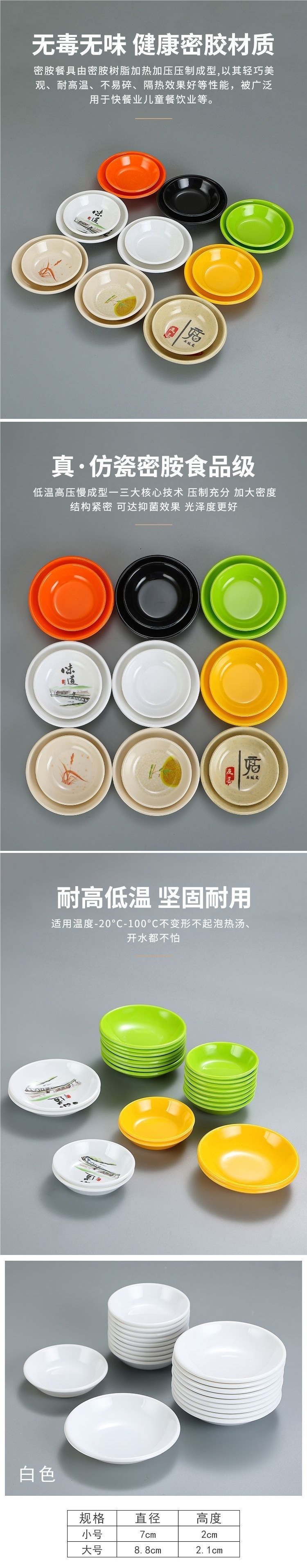 멜라민 맛 접시 플라스틱 소스 모조 도자기 식초 상업용 고추 패스트 푸드 디핑 냄비 둥근 접시스토어 가기