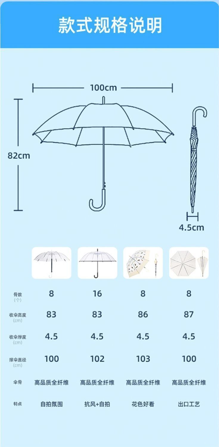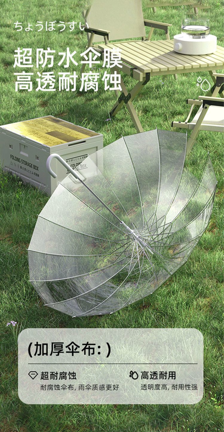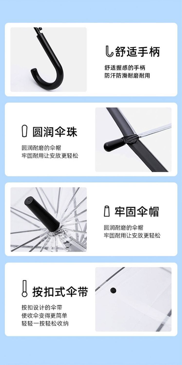뼈투명우산, 손잡이가 긴 우산, 대형 더블 여성용 흰색 인터넷 연예인 일본식 고가치 우산, 대형 우산스토어 가기