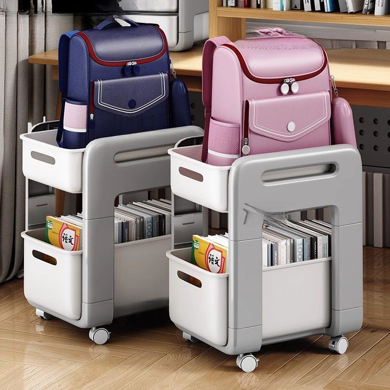 무소음 책가방 학생용 수납 선반 이동식 트롤리 다층 책 수납 바닥 슬라이딩 휠이 있는 가정용 테이블