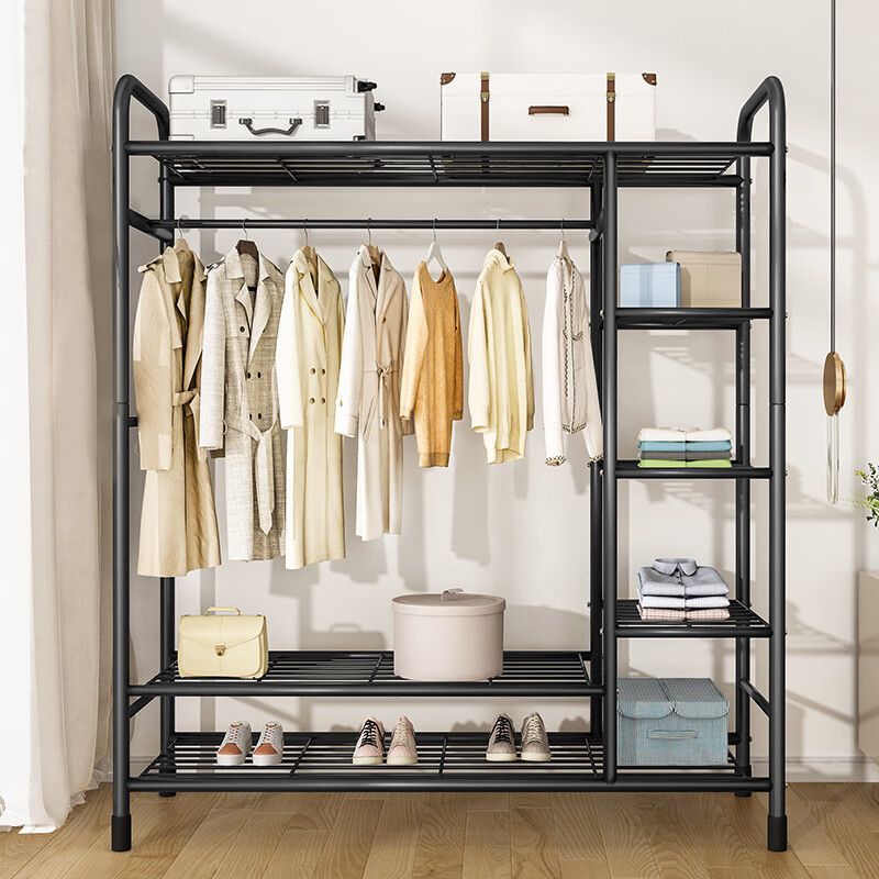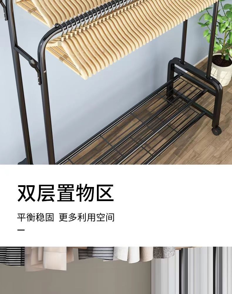 옷걸이 바닥 스탠딩 수직 이중 막대 옷걸이 두꺼운 옷걸이 홈 침실 코트 랙 다층 스토리지 랙