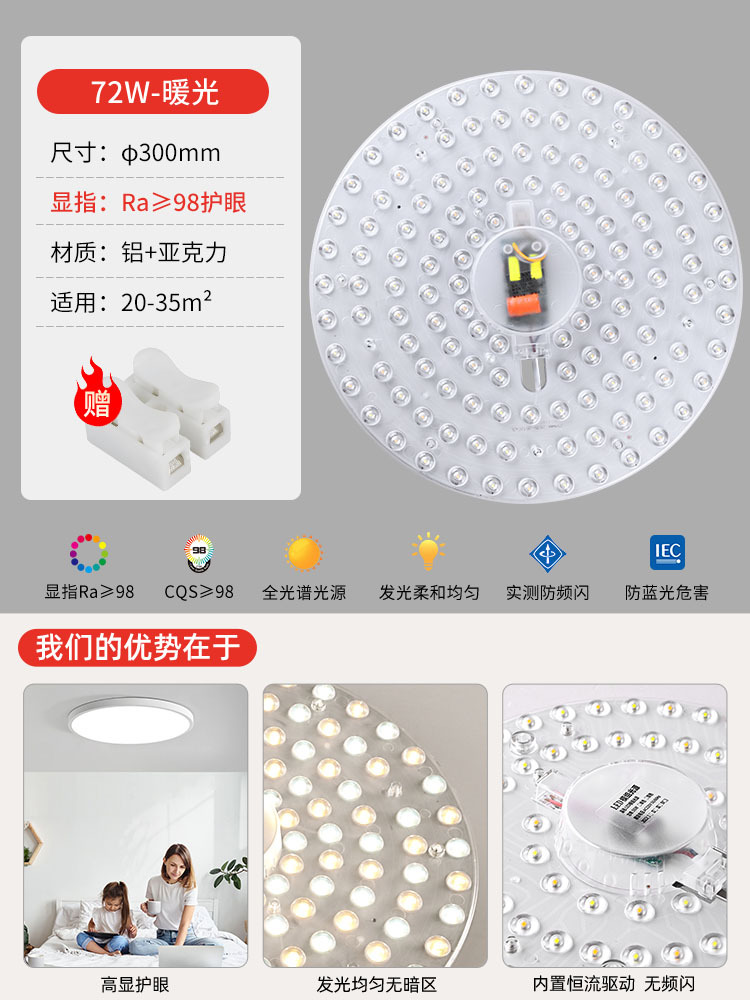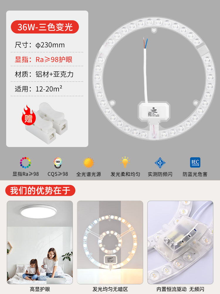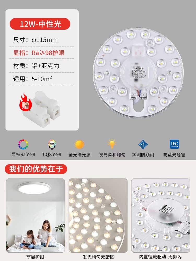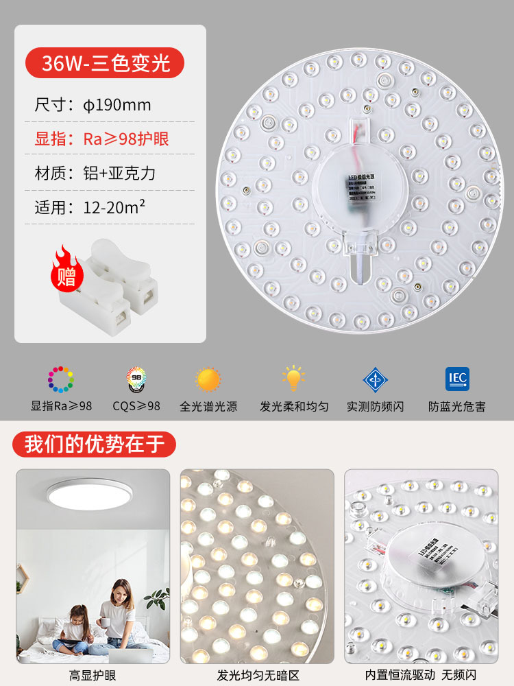 Led 천장 조명 심지 원형 광원 모듈 교체 눈 보호 전체 스펙트럼 높은 디스플레이 3 색 디밍 자기 빛 디스크스토어 가기