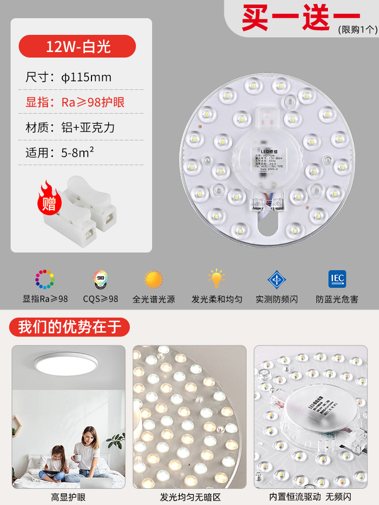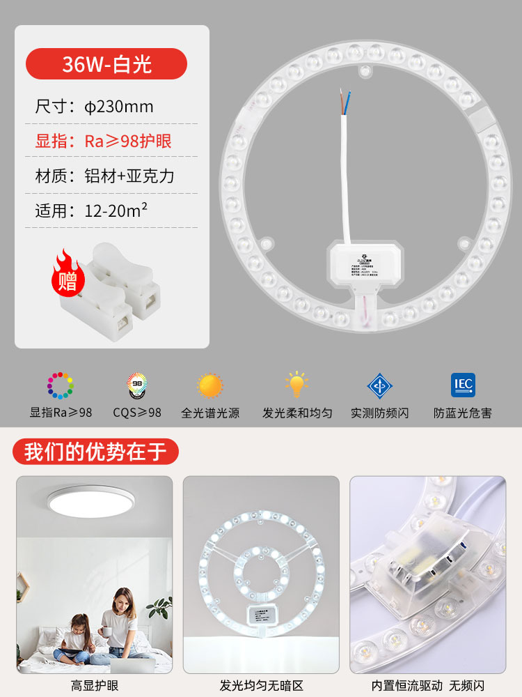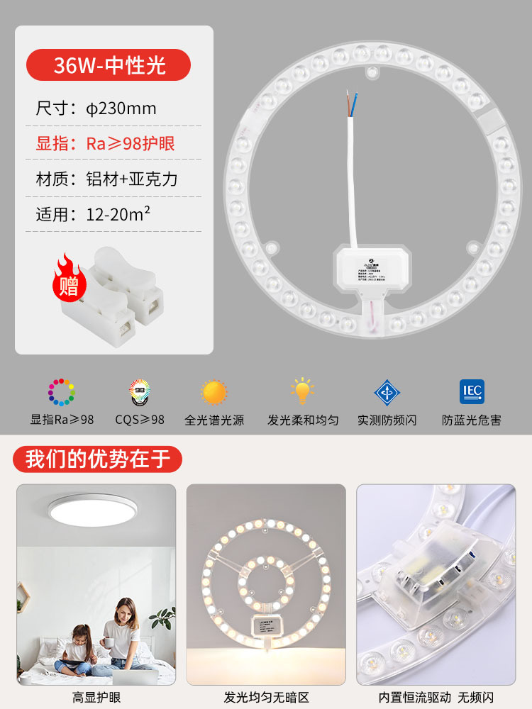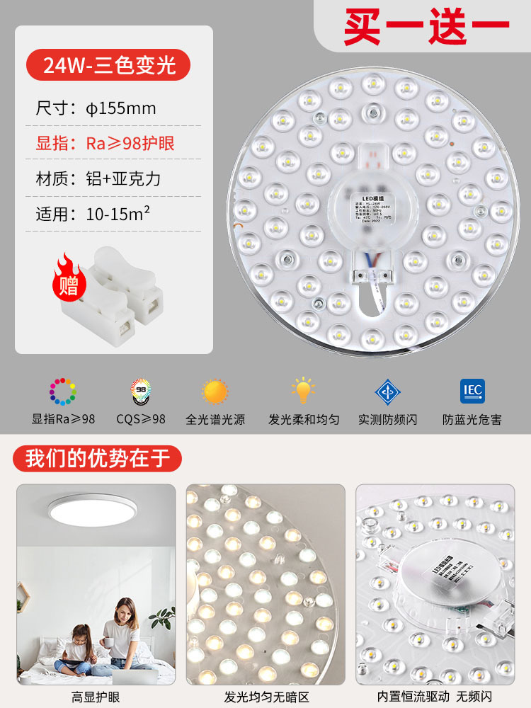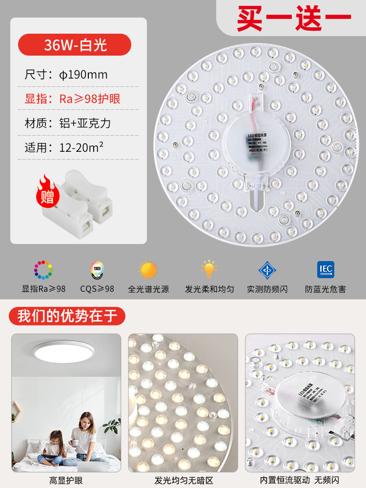 Led 천장 조명 심지 원형 광원 모듈 교체 눈 보호 전체 스펙트럼 높은 디스플레이 3 색 디밍 자기 빛 디스크스토어 가기