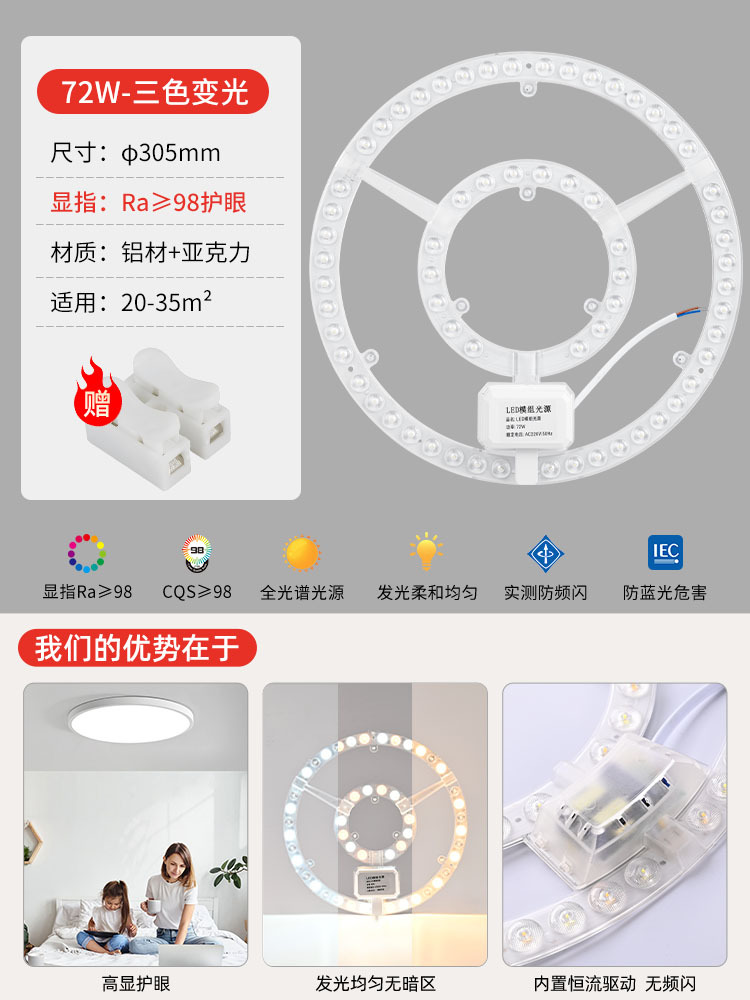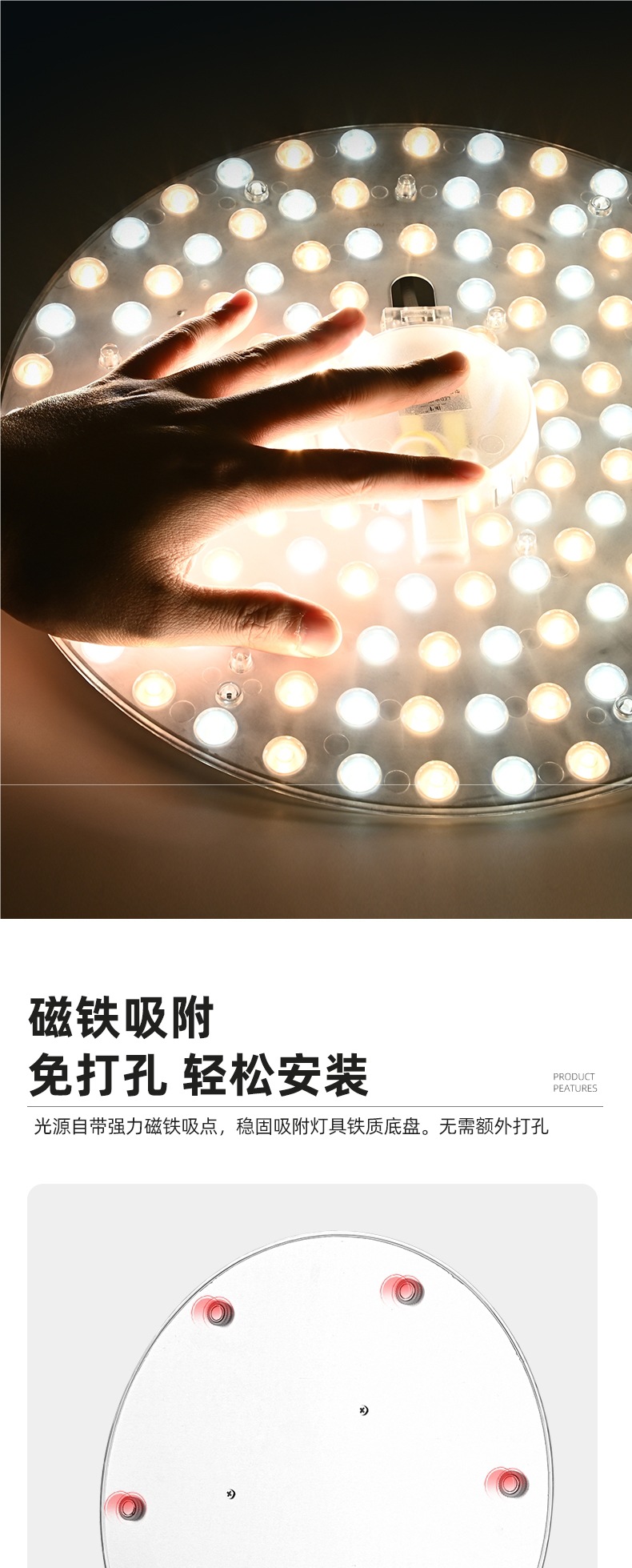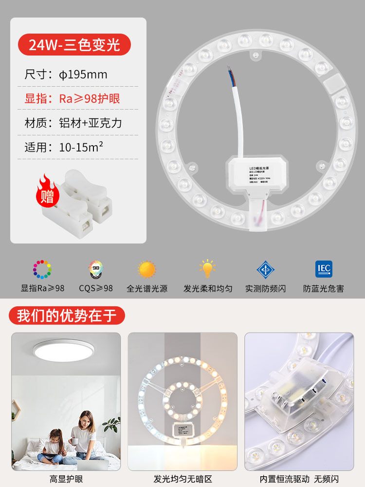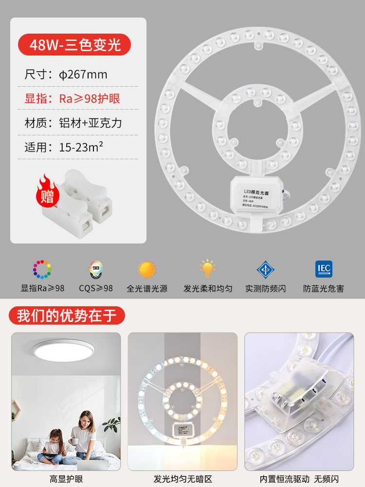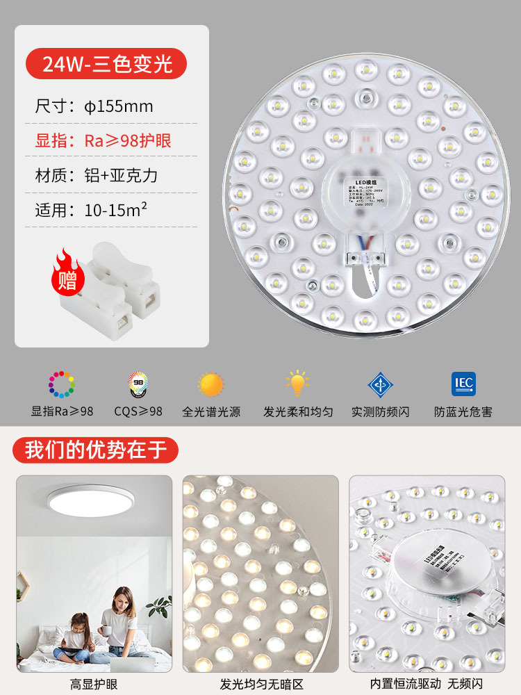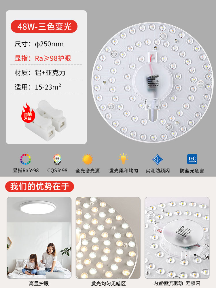 Led 천장 조명 심지 원형 광원 모듈 교체 눈 보호 전체 스펙트럼 높은 디스플레이 3 색 디밍 자기 빛 디스크
