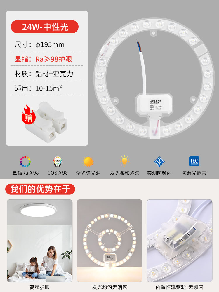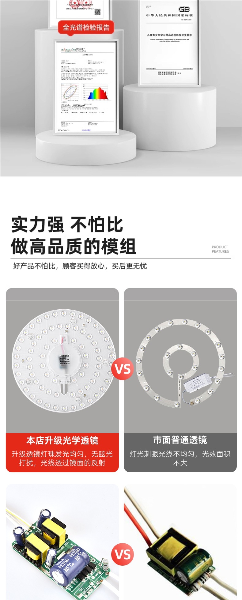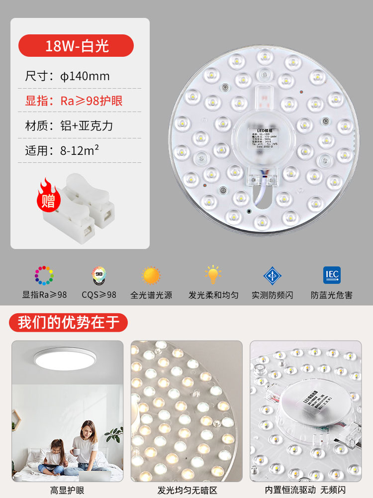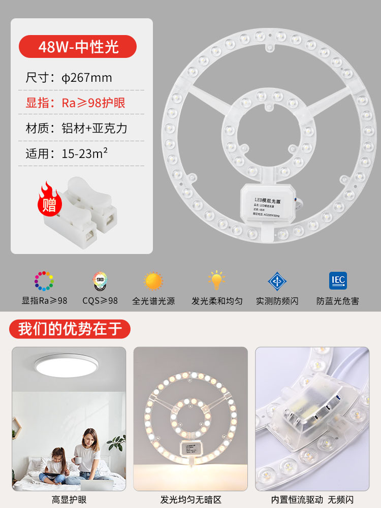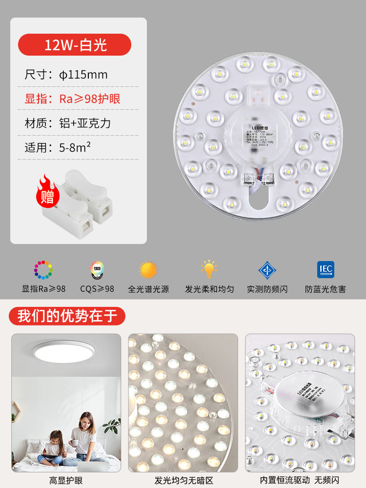 Led 천장 조명 심지 원형 광원 모듈 교체 눈 보호 전체 스펙트럼 높은 디스플레이 3 색 디밍 자기 빛 디스크