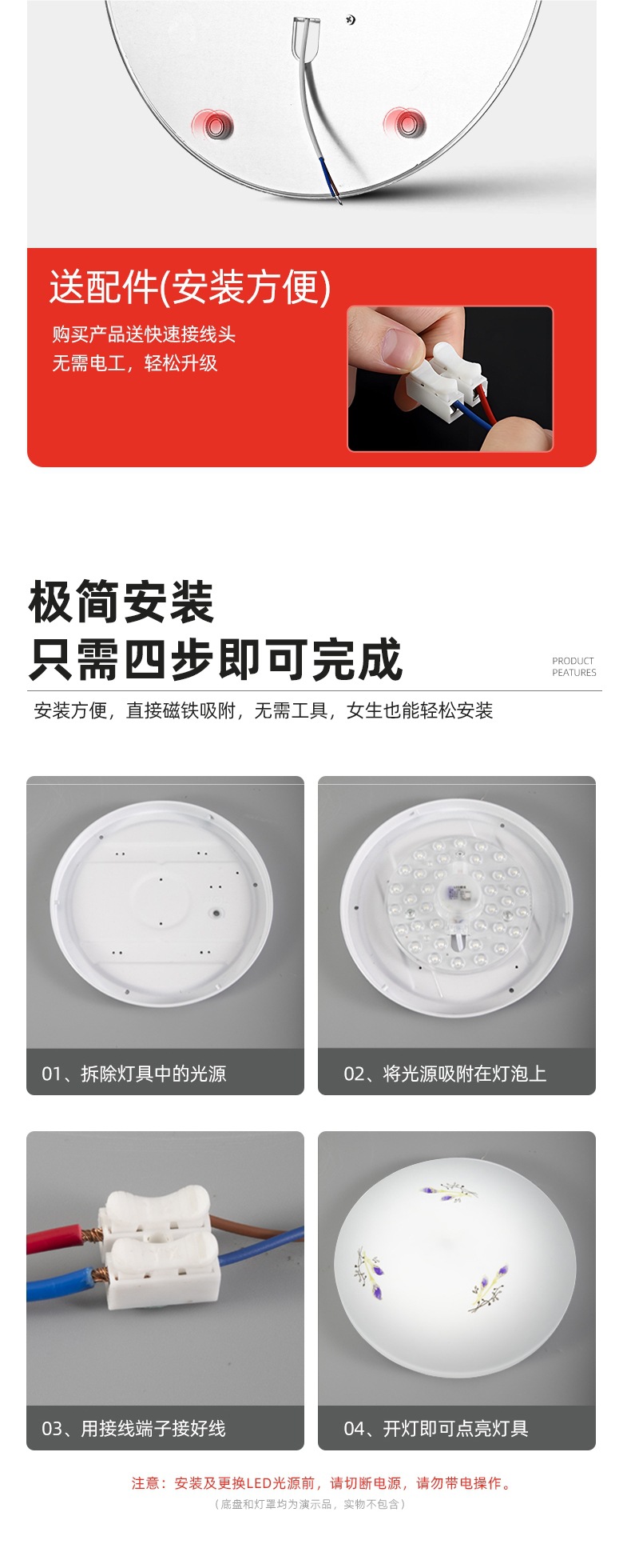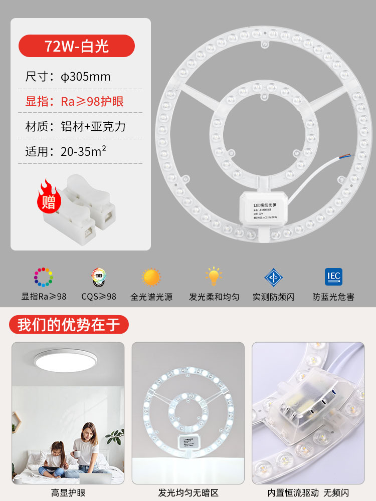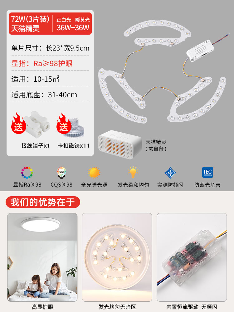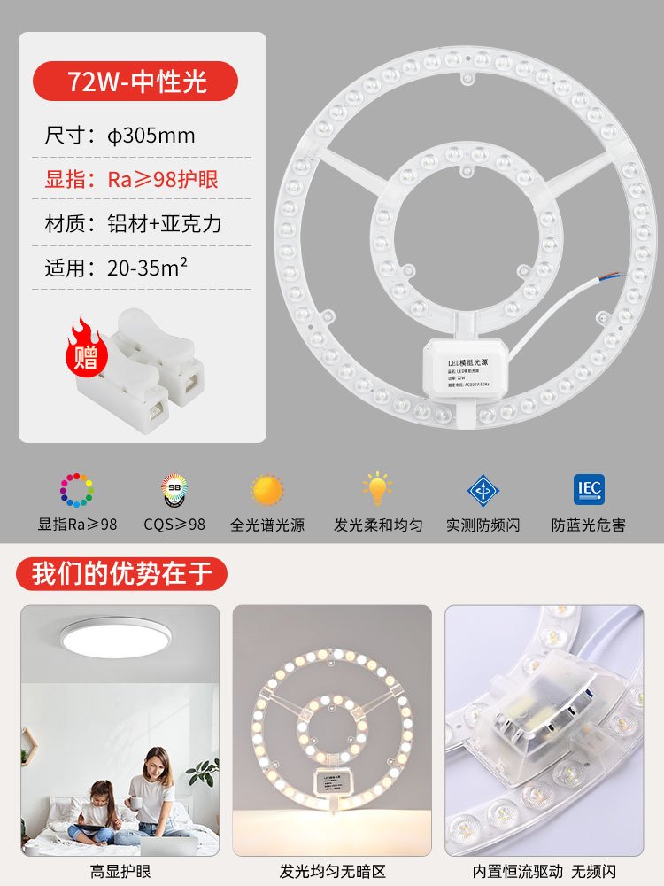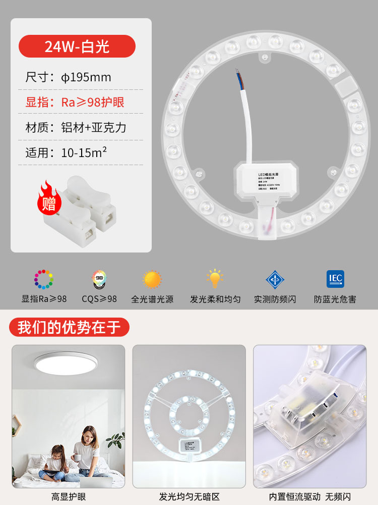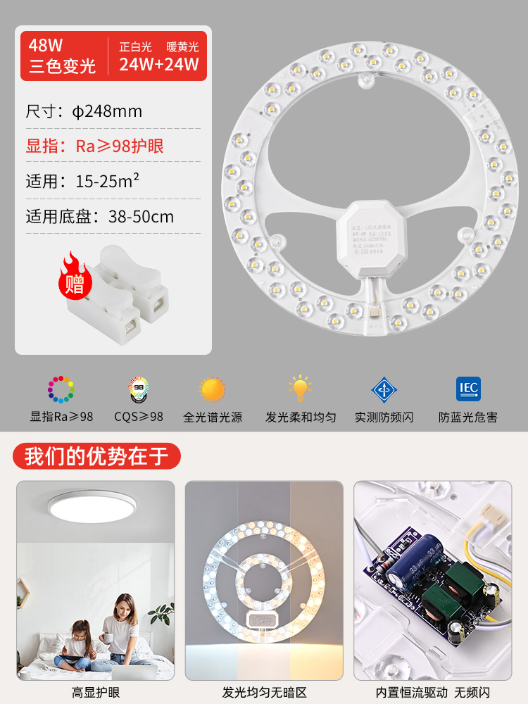 Led 천장 조명 심지 원형 광원 모듈 교체 눈 보호 전체 스펙트럼 높은 디스플레이 3 색 디밍 자기 빛 디스크