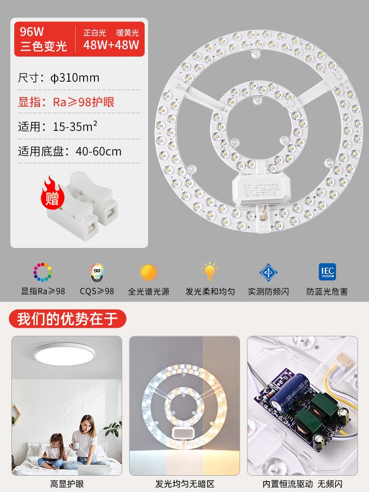 • (링형 복열 램프 비즈) 3색 디밍 96W [눈 보호 Ra98] 업그레이드된 초고휘도 모델