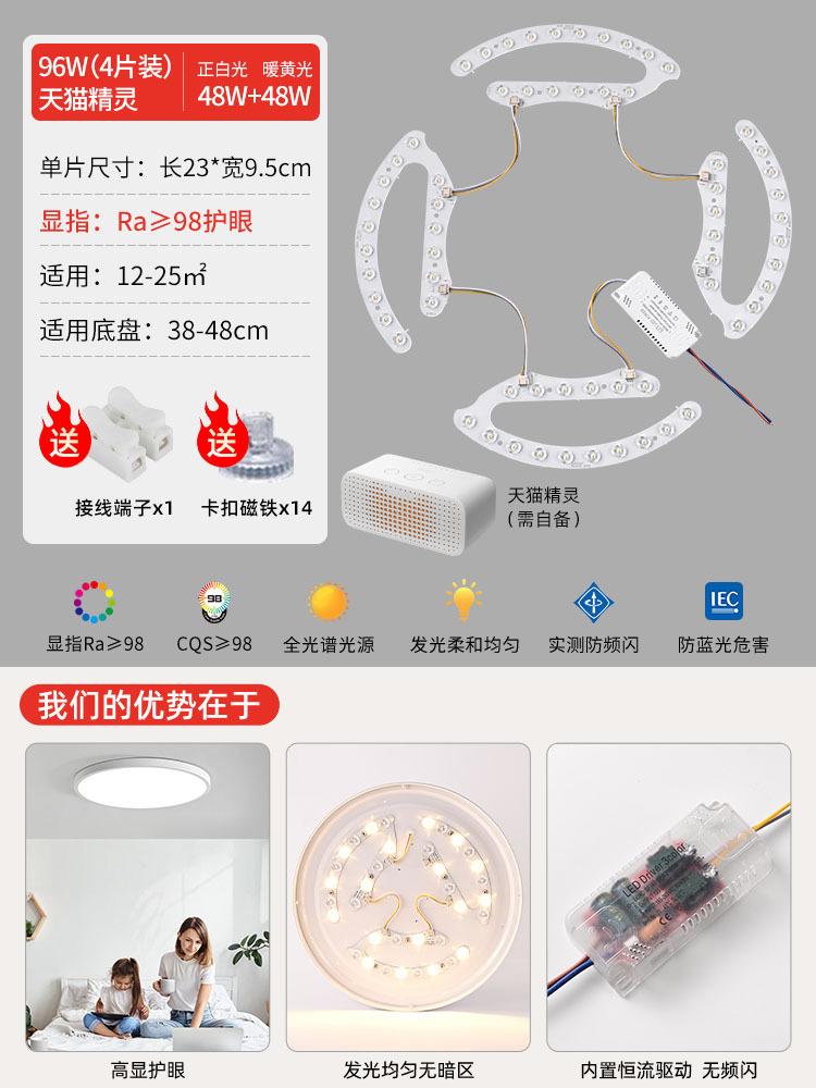 • (링형 복열 램프 비즈) 무단계 디밍 96W [눈 보호 Ra98] 업그레이드된 초고휘도 모델
