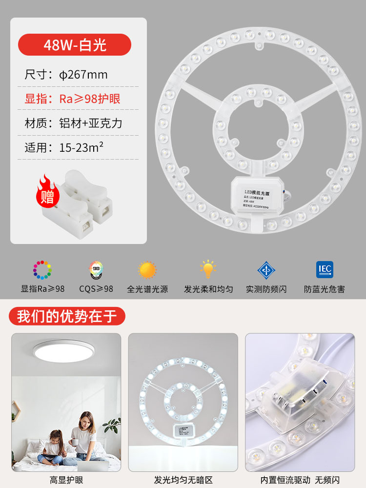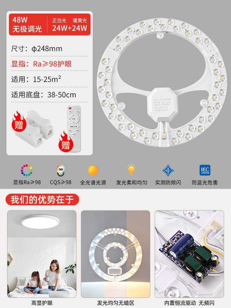 • (링형 복열 램프 비즈) 무단계 디밍 48W [눈 보호 Ra98] 업그레이드된 초고휘도 모델