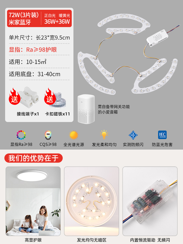 • 업그레이드된 고화질 눈 보호 Ra98 [72W] 3색 디밍
