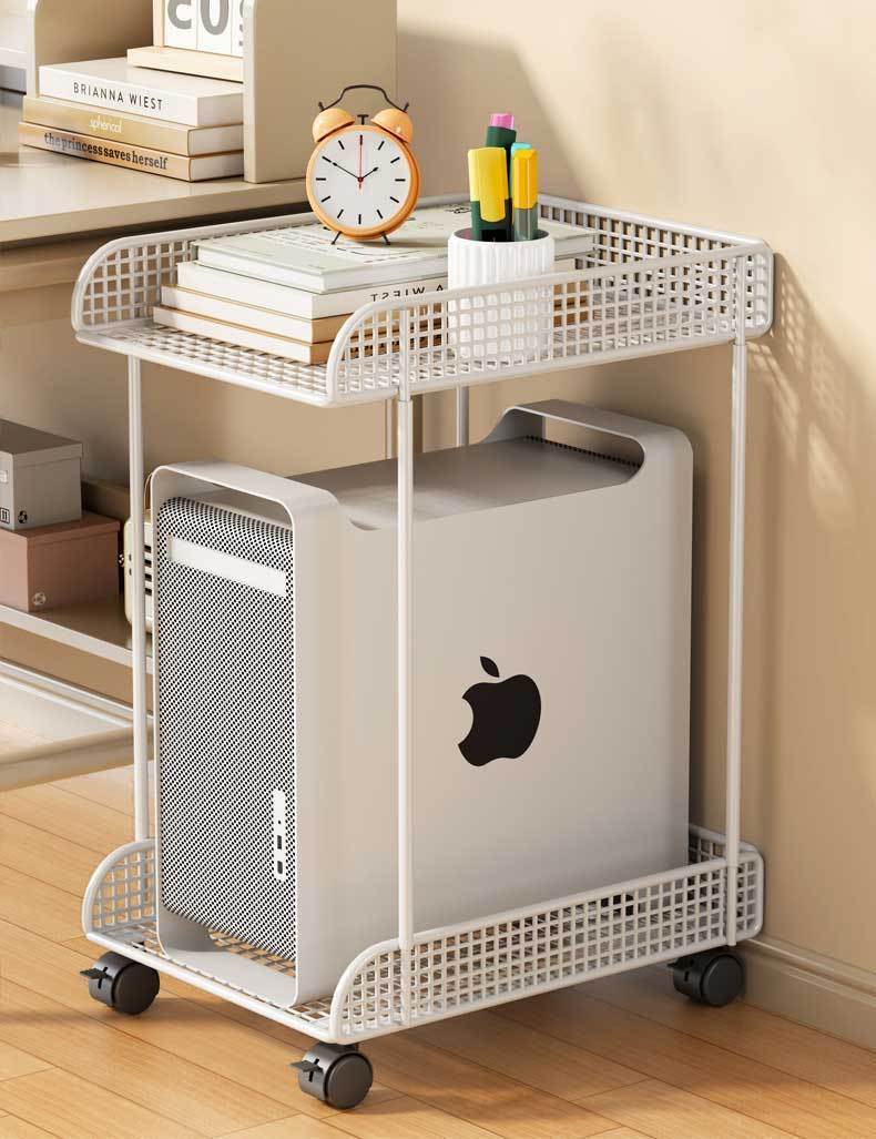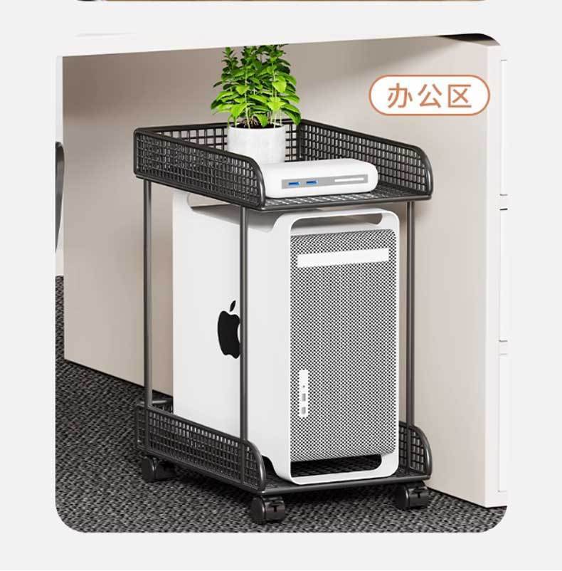 호스트 캐리어 데스크탑 컴퓨터 메인 케이스 캐리어 베이스 스토리지 랙 바퀴가 달린 이동식 2층 철제 스토리지 랙