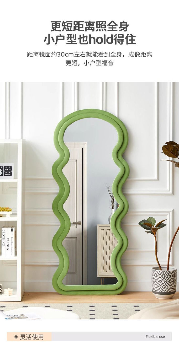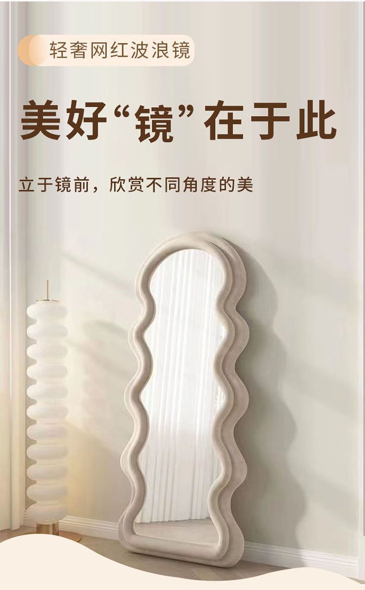 드레싱거울, 틱톡 같은 스타일, 심플 모던 스타일, 인터넷 연예인 거울, 웨이브 스타일 전신거울, 침실 홈 플로어 피팅스토어 가기