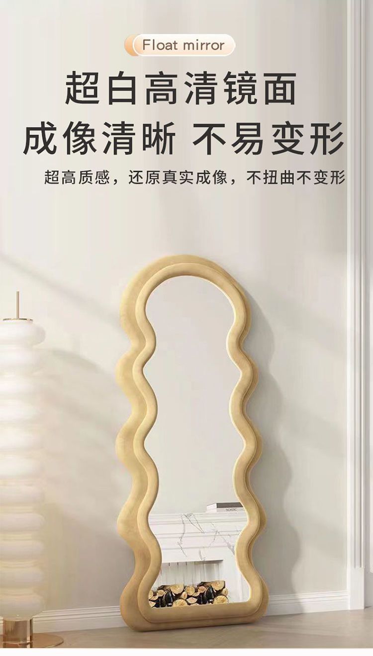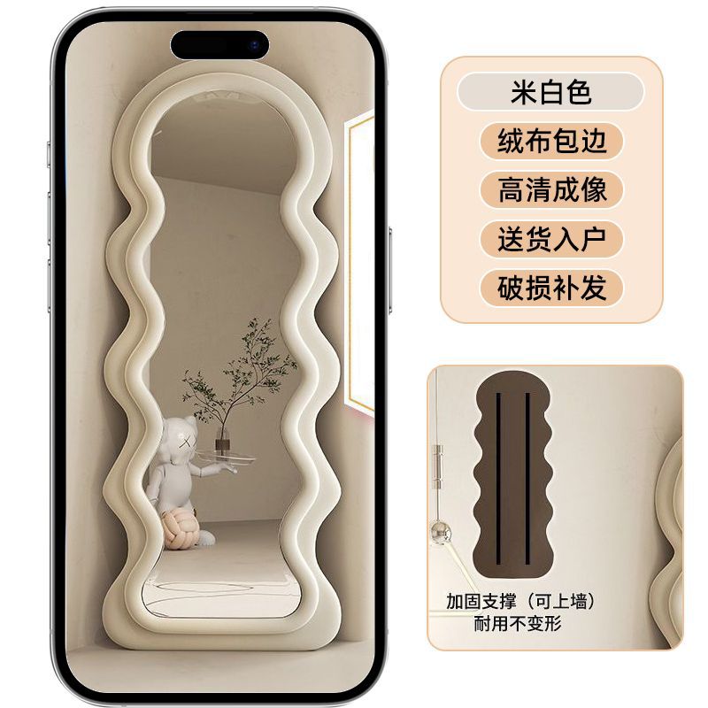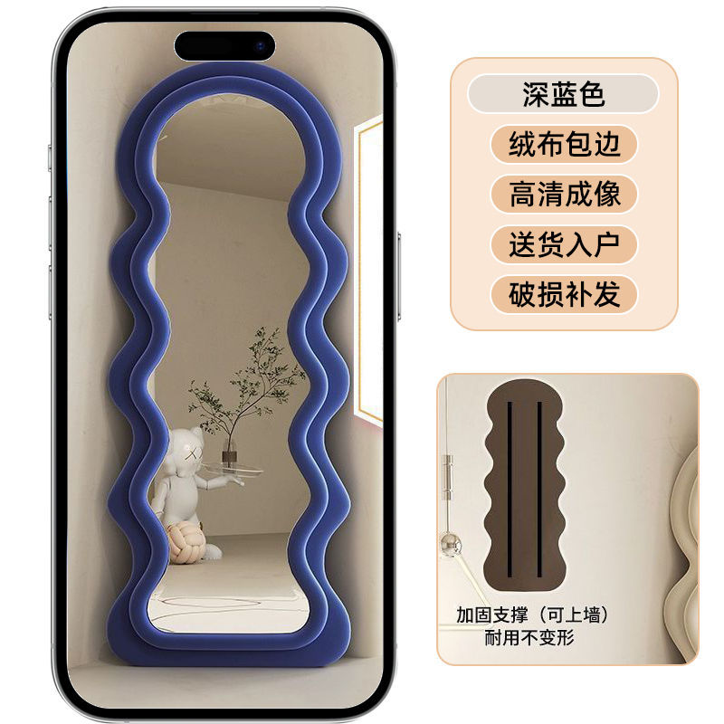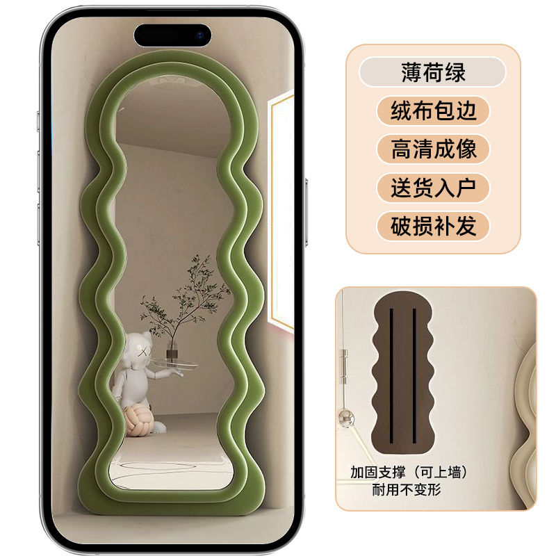 드레싱거울, 틱톡 같은 스타일, 심플 모던 스타일, 인터넷 연예인 거울, 웨이브 스타일 전신거울, 침실 홈 플로어 피팅