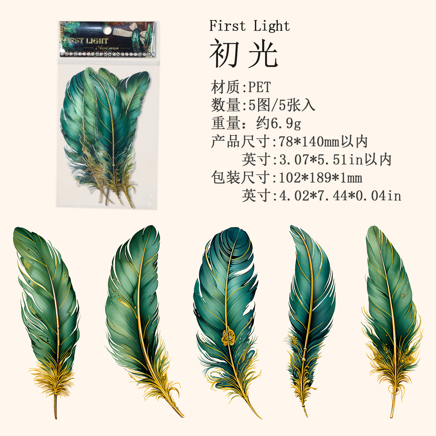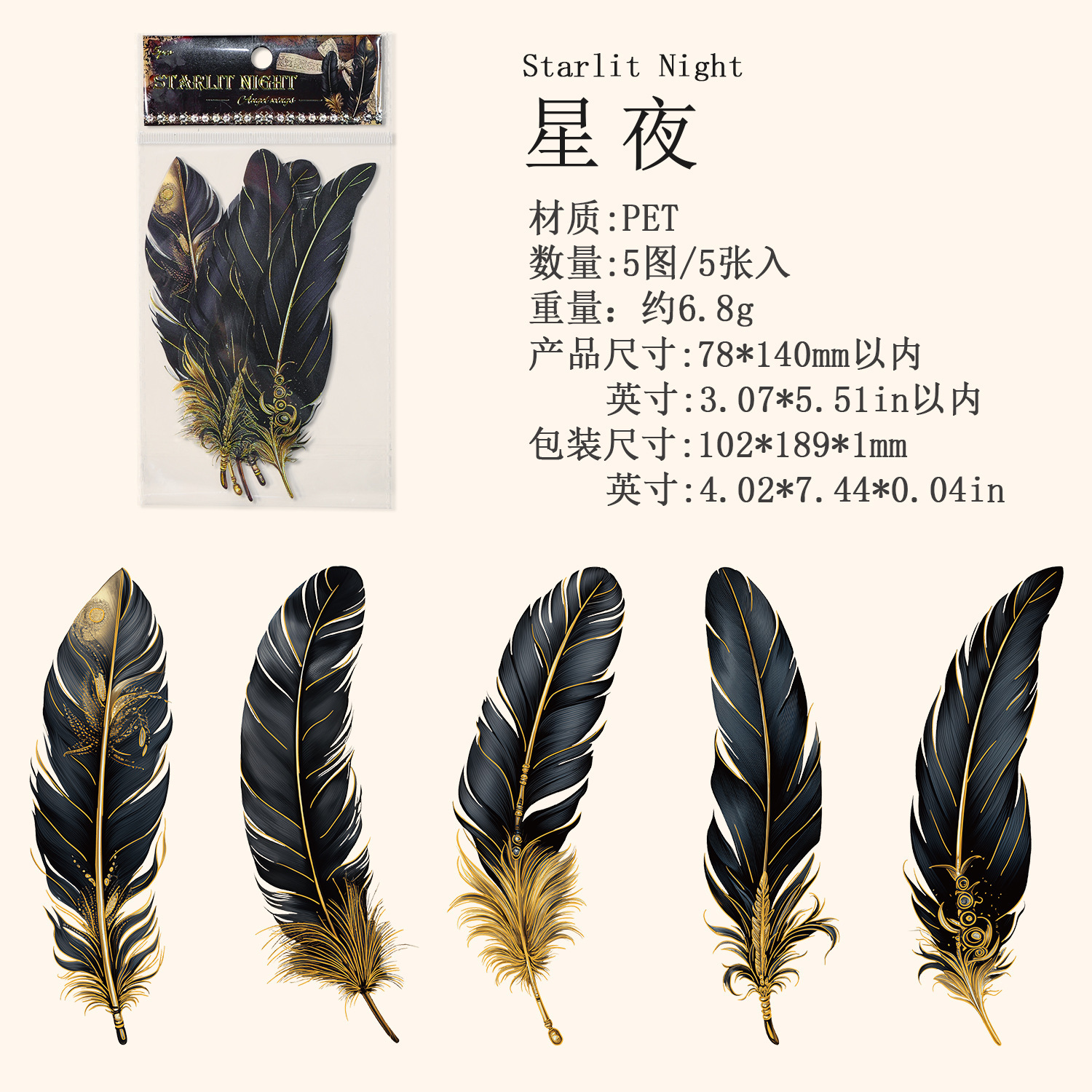 구구 포레스트 PET 핫 스탬핑 스티커 팩 Angel Feather 시리즈 복고풍 깃털 핸드북 소재 콜라주 5개