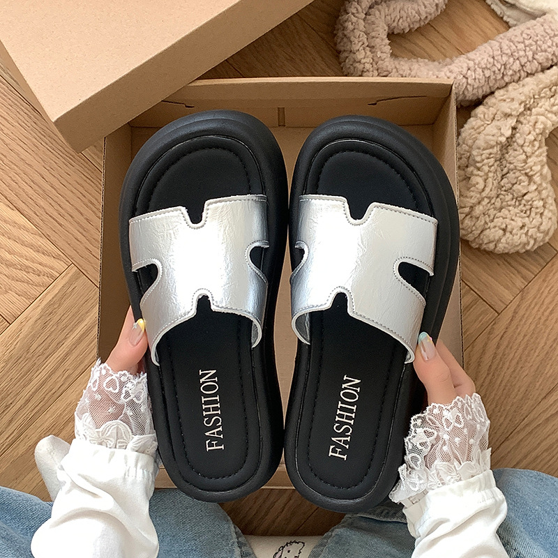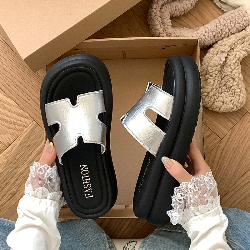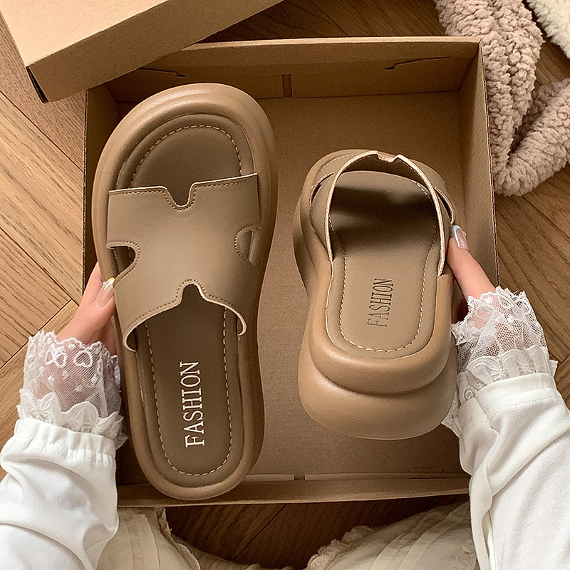 여성용 여름 아우터용 두꺼운 밑창 슬리퍼 2025 스커트가 있는 새로운 스타일 프렌치 캐주얼 비치 샌들스토어 가기