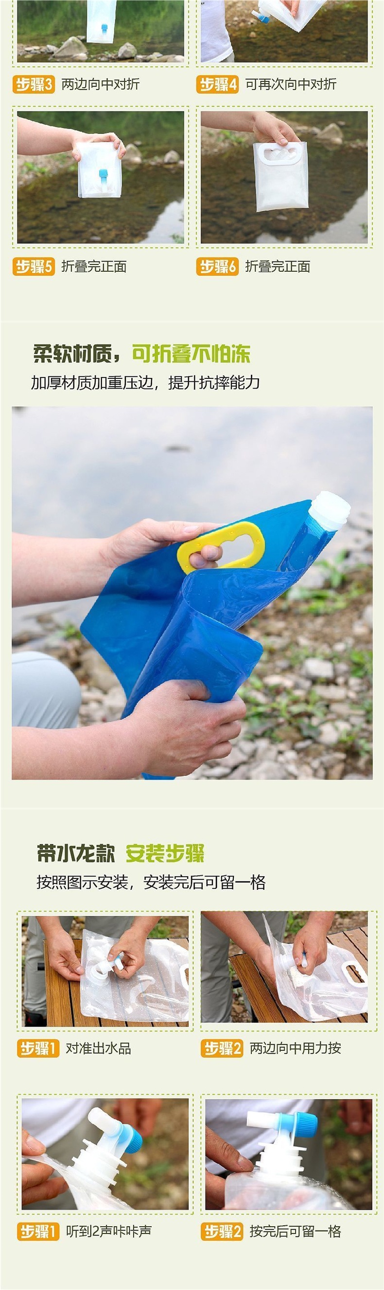 • 식품 등급의 두꺼워지고 강화된 재사용 모델 - 파란색 5L+10L(접이식 수도꼭지 1개 포함)