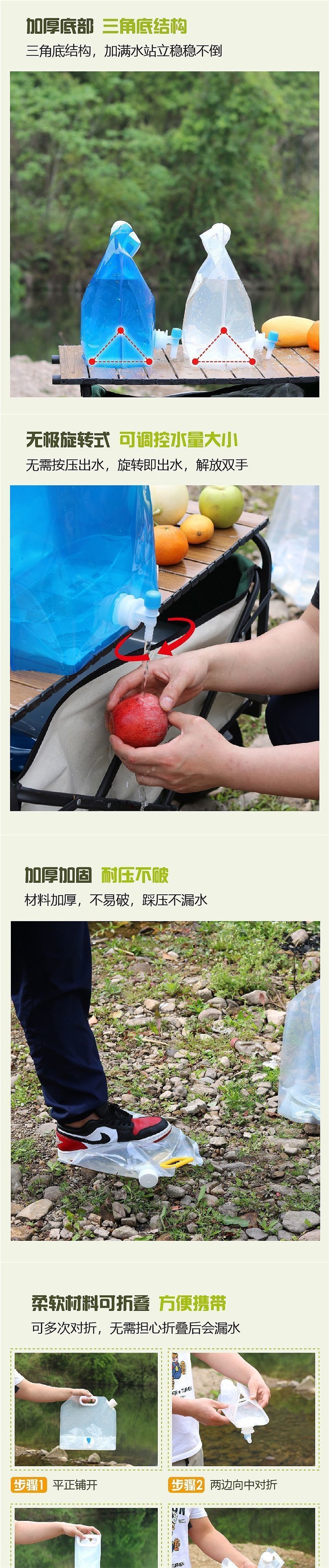 • 식품 등급의 두꺼워지고 강화된 재사용 모델 - 흰색 5L+10L(접이식 수도꼭지 1개 포함)