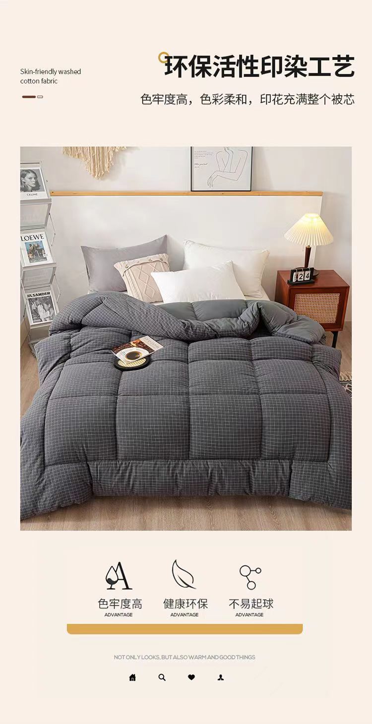 피부 친화적인 워시 코튼 이불, 두껍고 따뜻한 겨울 이불, 더블 이불 코어, 겨울 학생 기숙사 싱글 봄, 가을 이불 도매