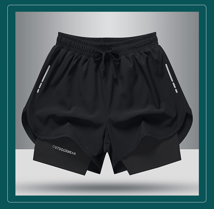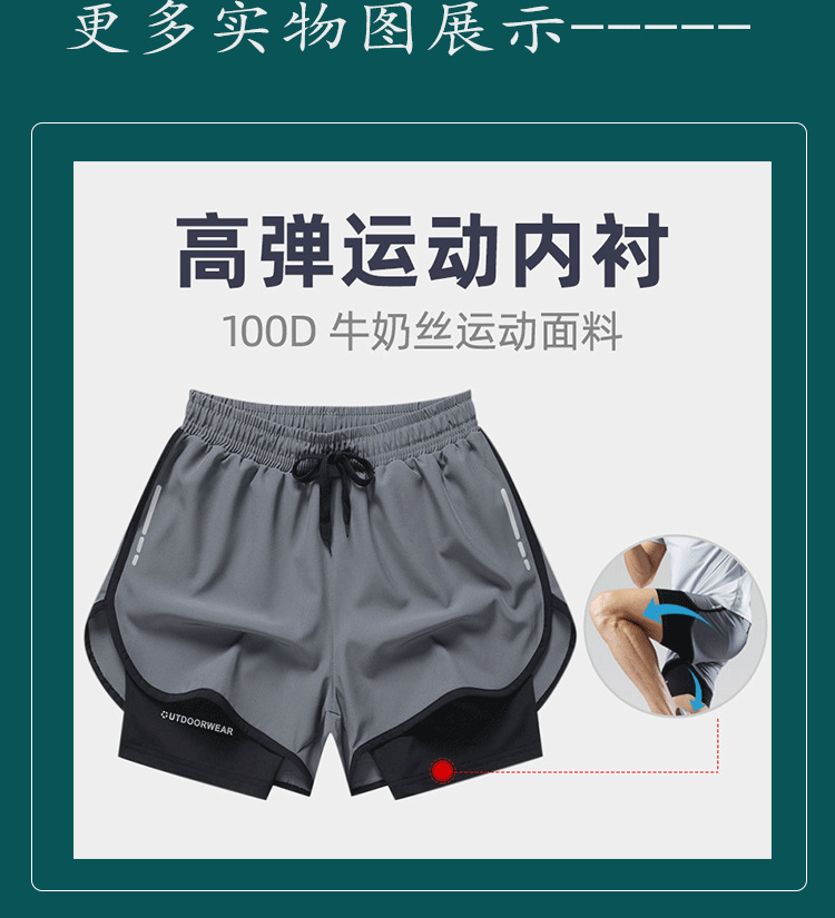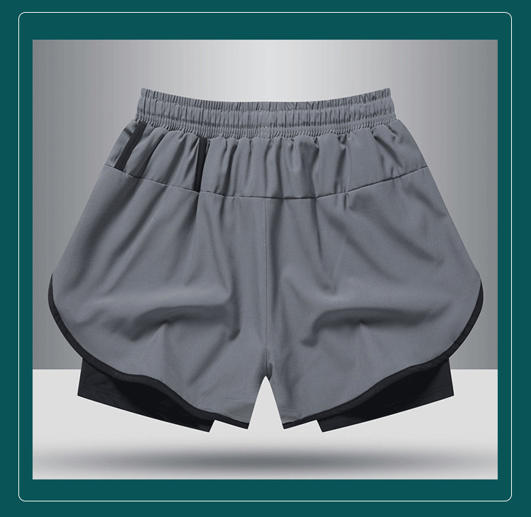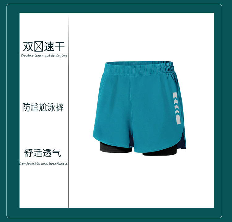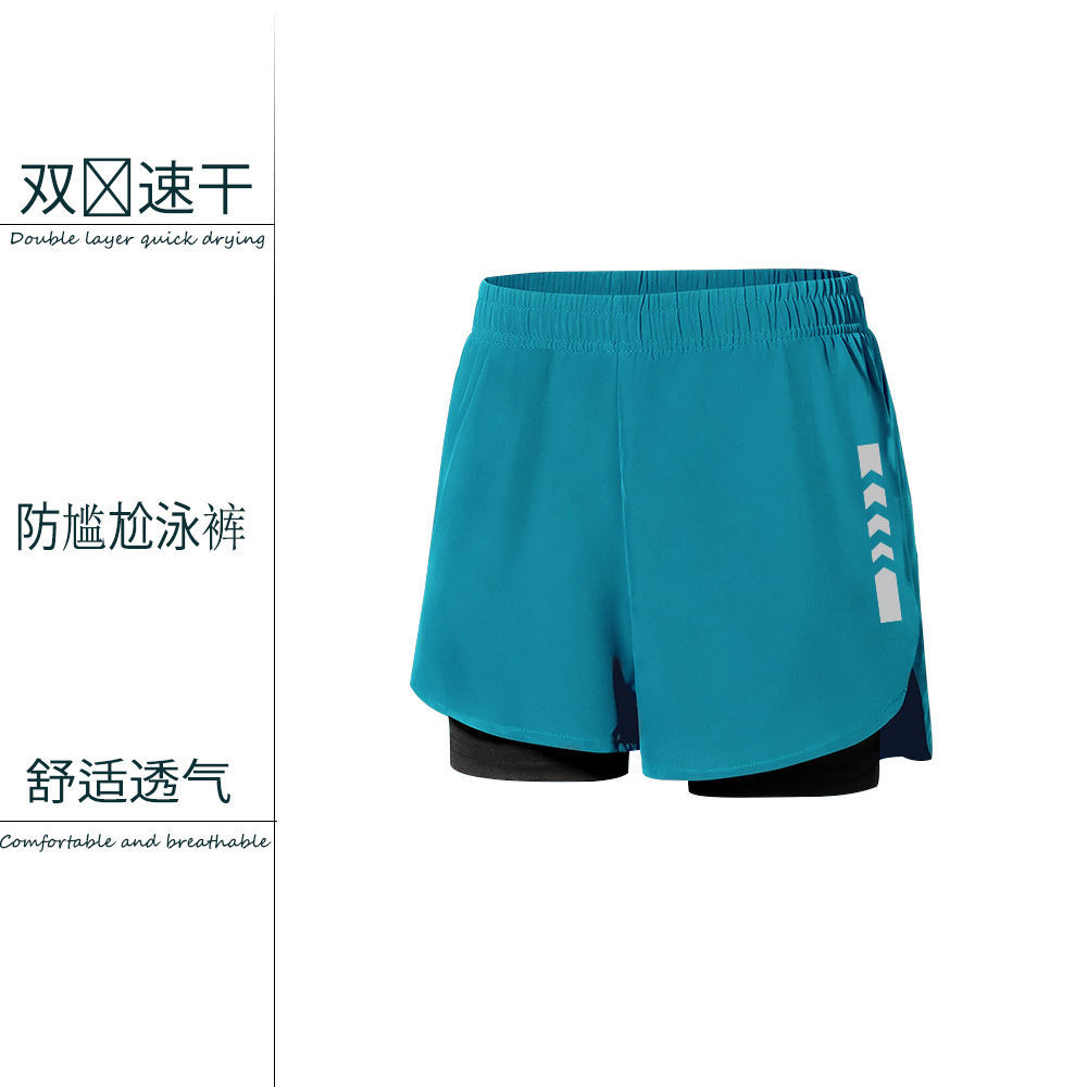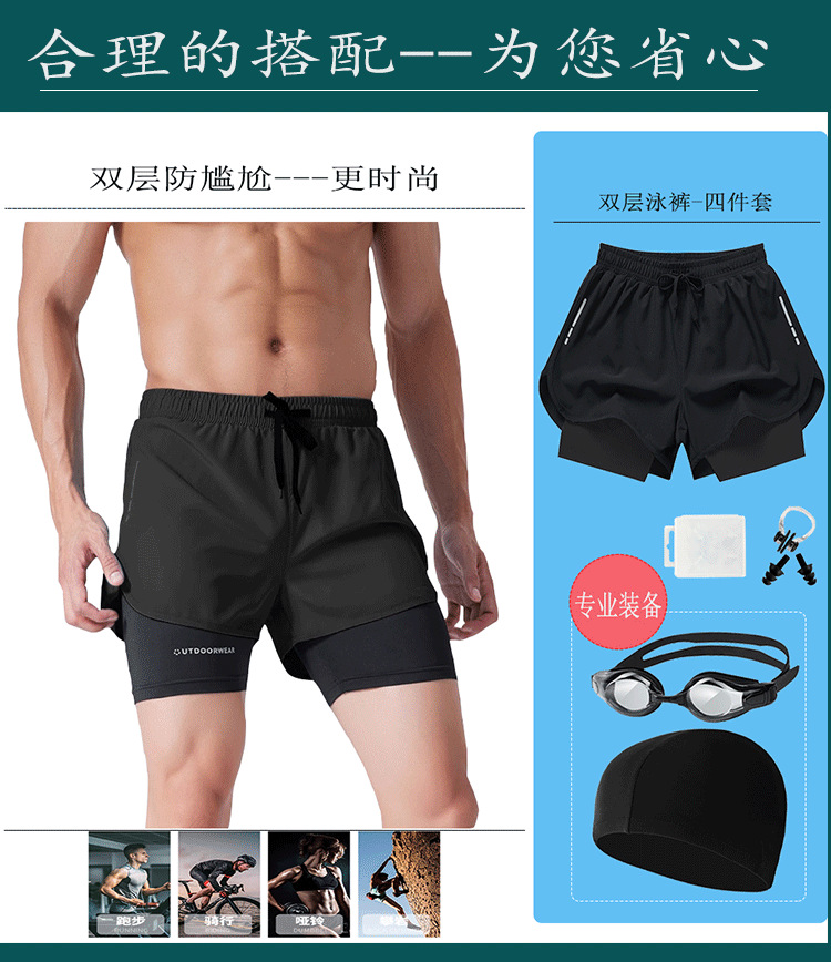 남성용 수영복, 스포츠 더블 레이어, 당황 방지, 속건성, 통기성, 루즈한 반바지, 비치 팬츠, 3점 런닝 팬츠