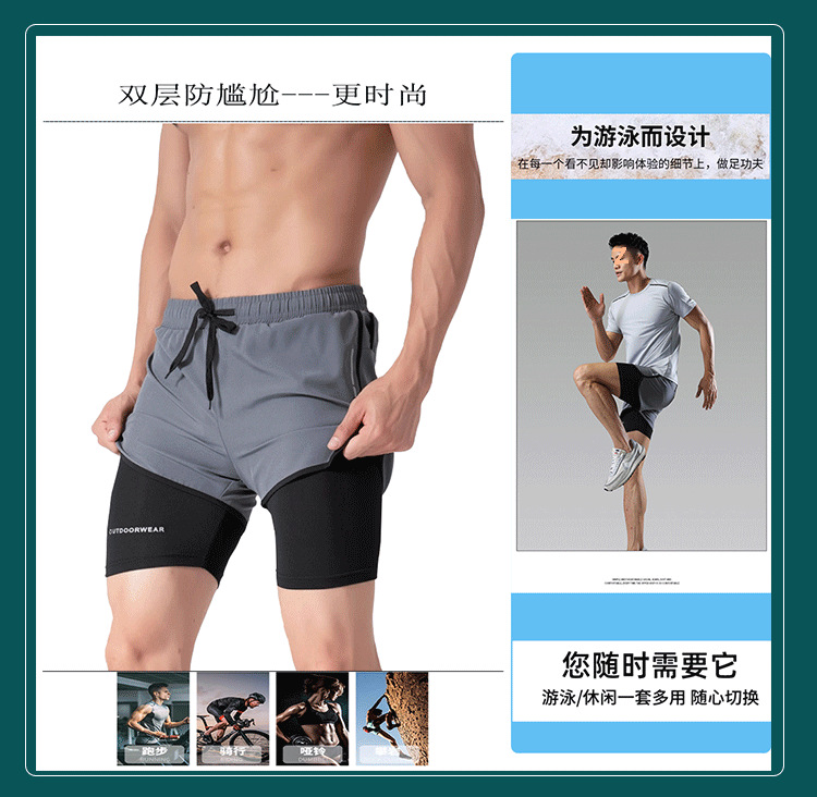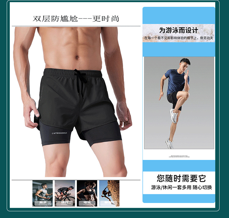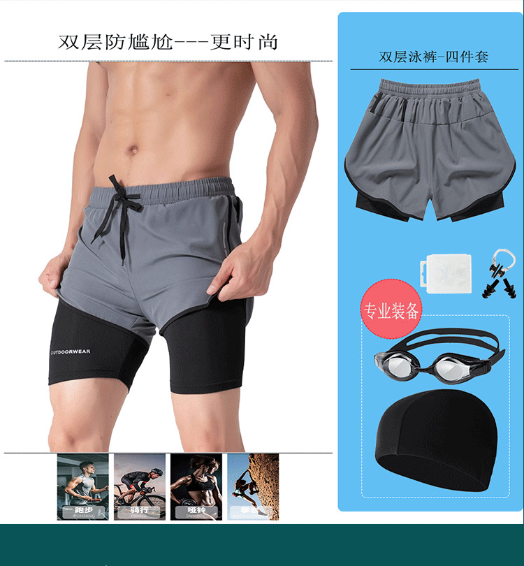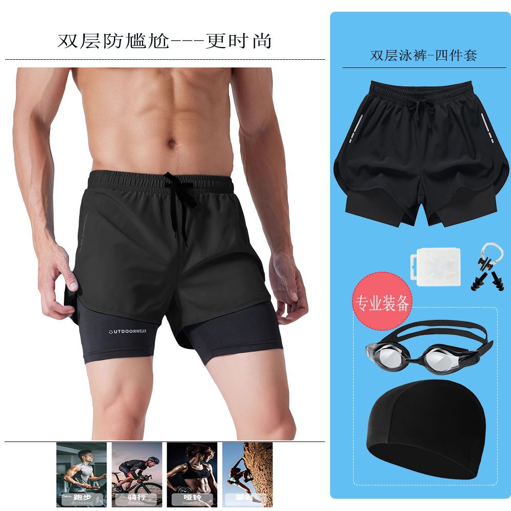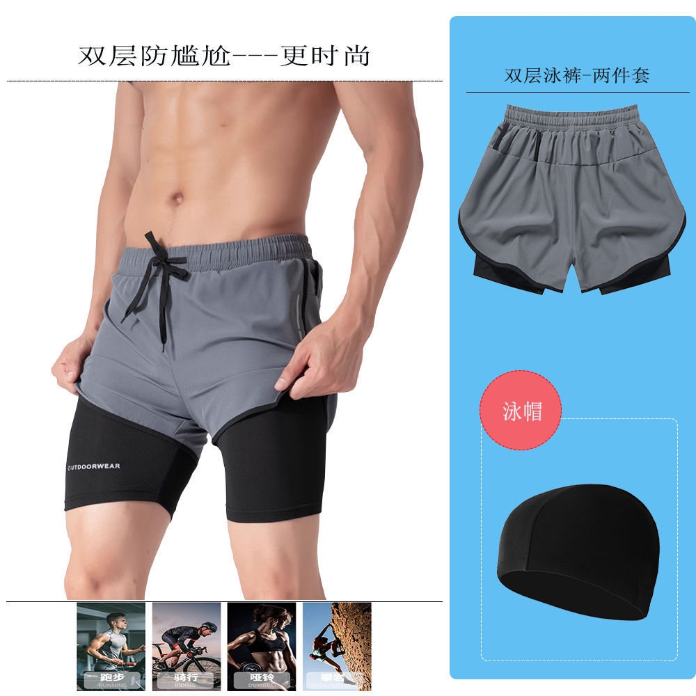 남성용 수영복, 스포츠 더블 레이어, 당황 방지, 속건성, 통기성, 루즈한 반바지, 비치 팬츠, 3점 런닝 팬츠스토어 가기