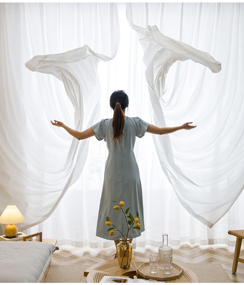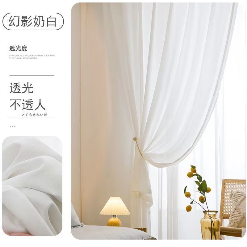 환상 거즈 긁힘 방지, 반투명, 불투명, 심플 모던 커튼, 거실, 침실, 발코니, 자외선 차단 흰색 거즈 커튼스토어 가기
