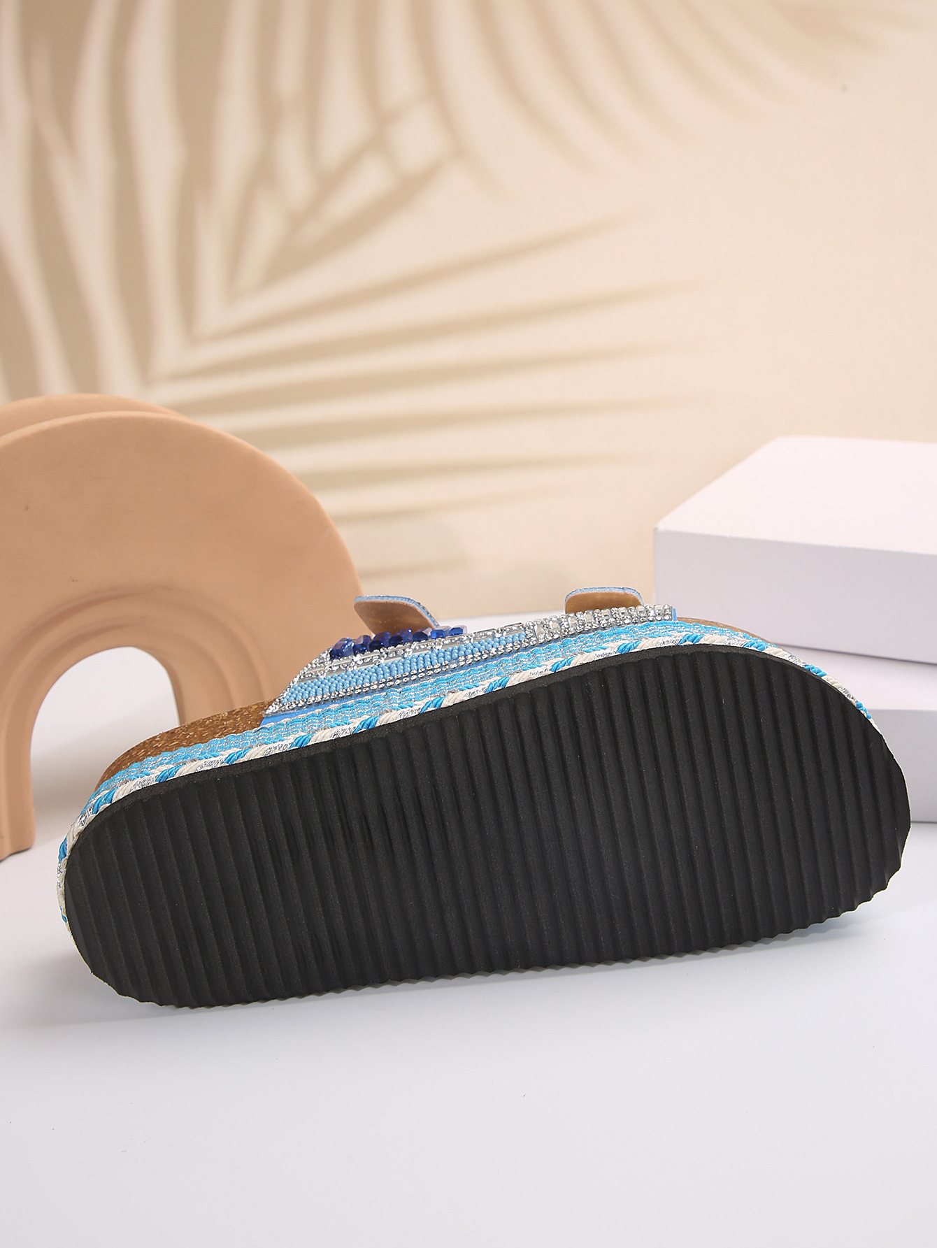 2025년 여름 신상 두꺼운 밑창 더블 버튼 코르크 슬리퍼 대형 라인스톤 대마 로프 비치 슬리퍼 여성용 43 크로스보더 직접 공급스토어 가기
