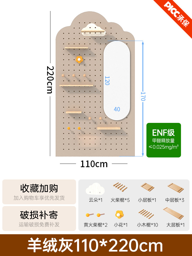 • 나뭇결 컬러 클라우드 110x220cm [표준 거울 패키지] [ENF 모자 및 유아용 플레이트]