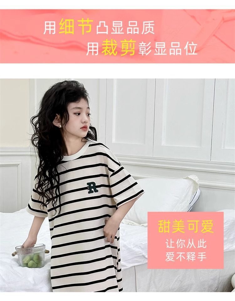 아기 소녀 잠옷 여름 얼음 실크 반팔 소녀 잠옷 느슨한 캐주얼 소녀 드레스 중형 및 대형 어린이 에어컨 옷스토어 가기