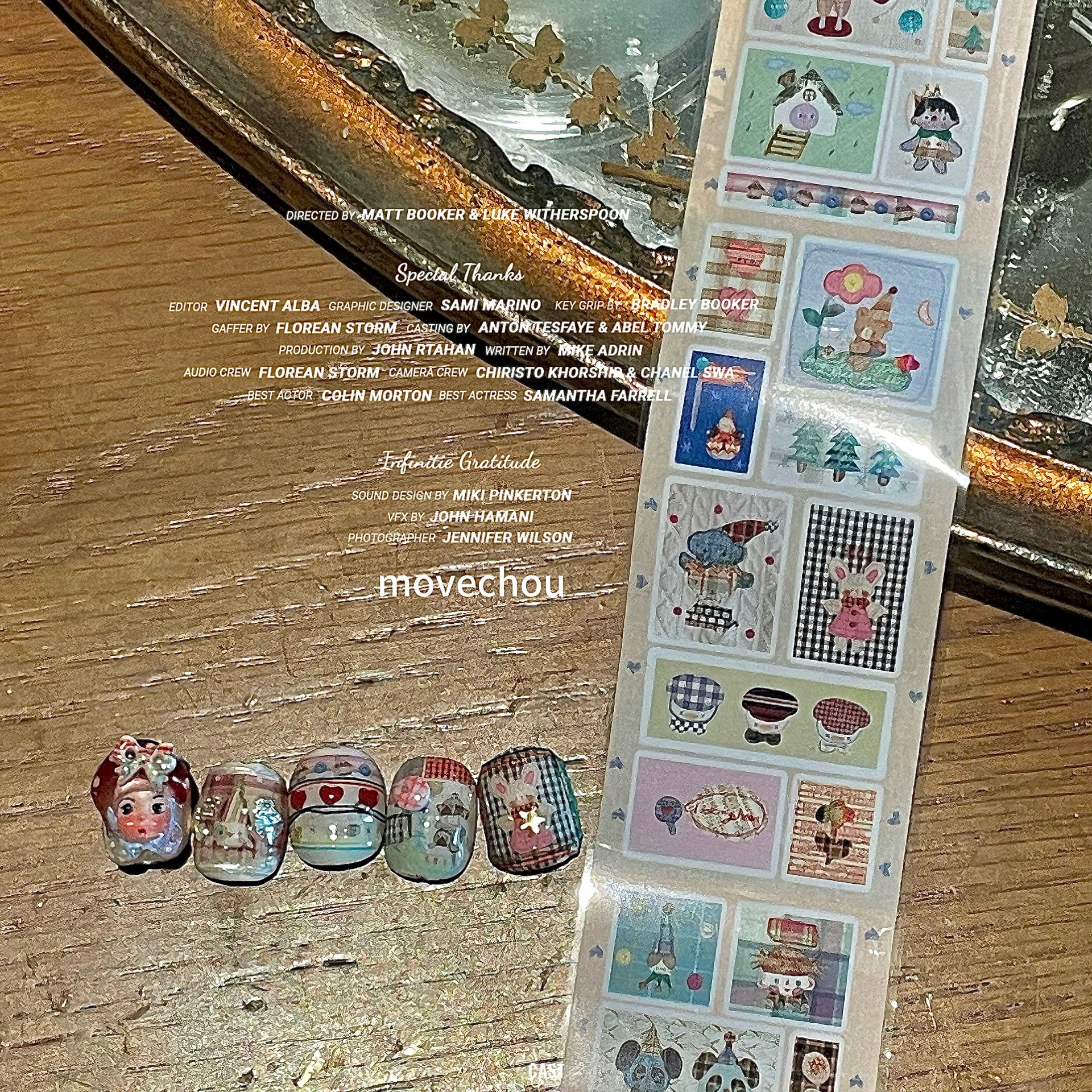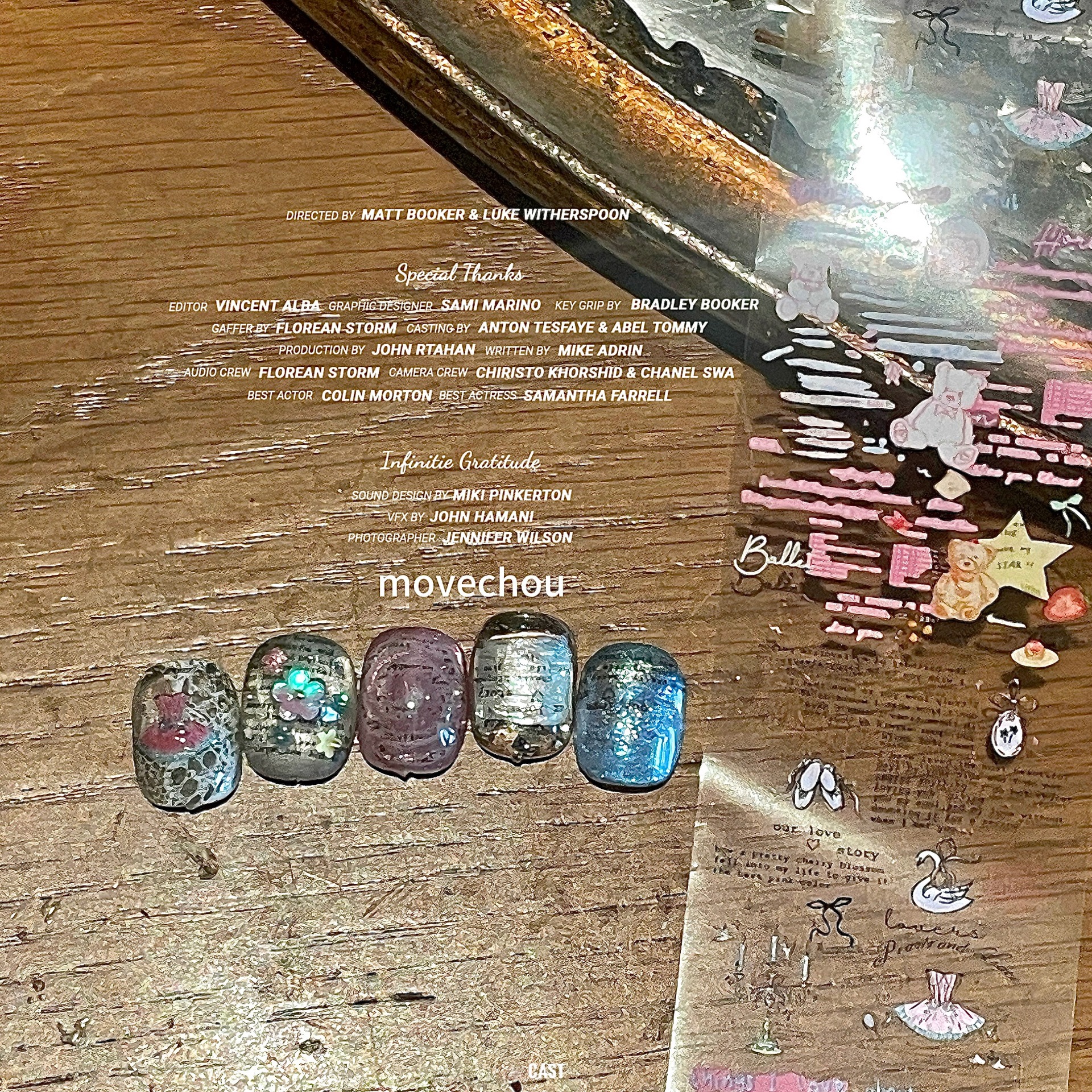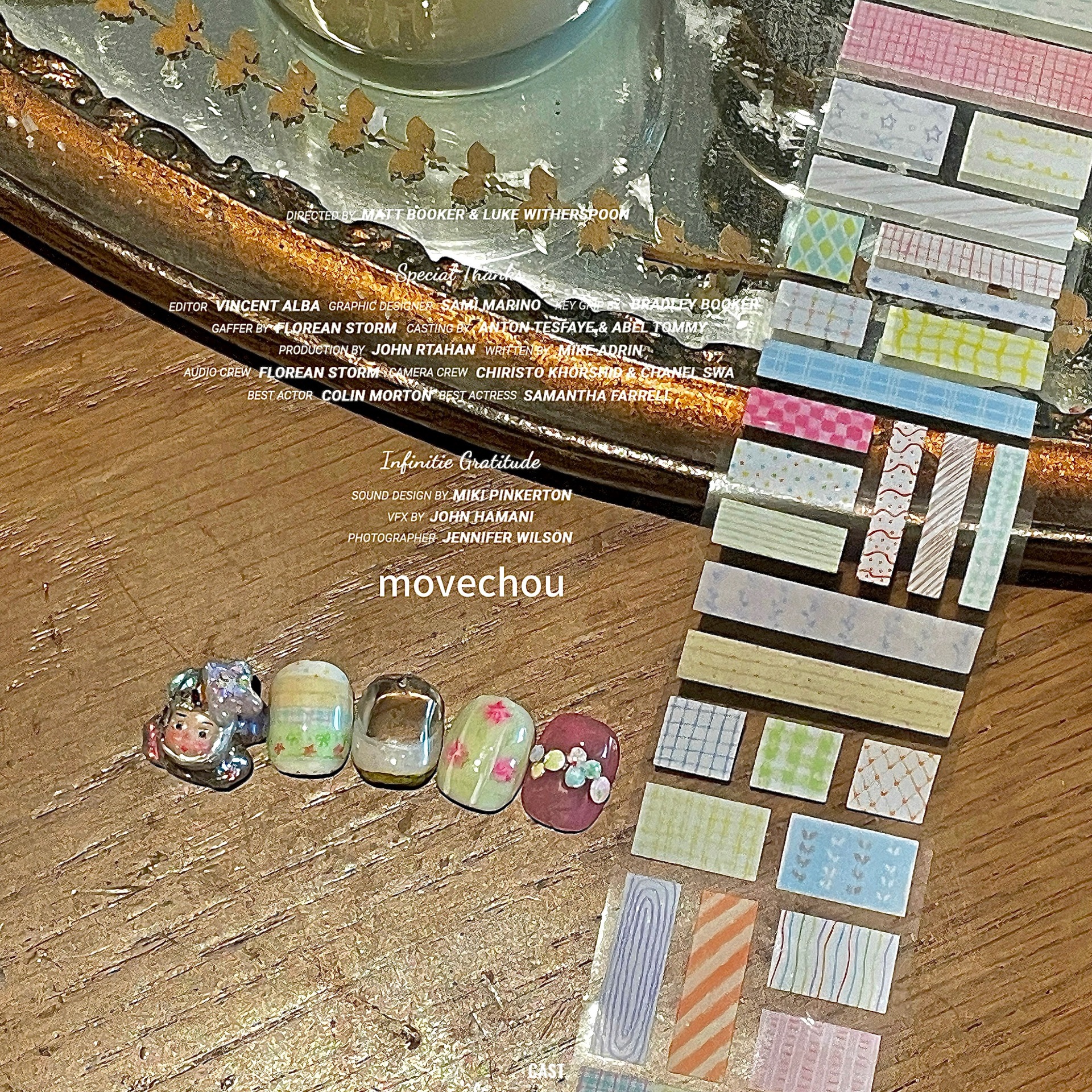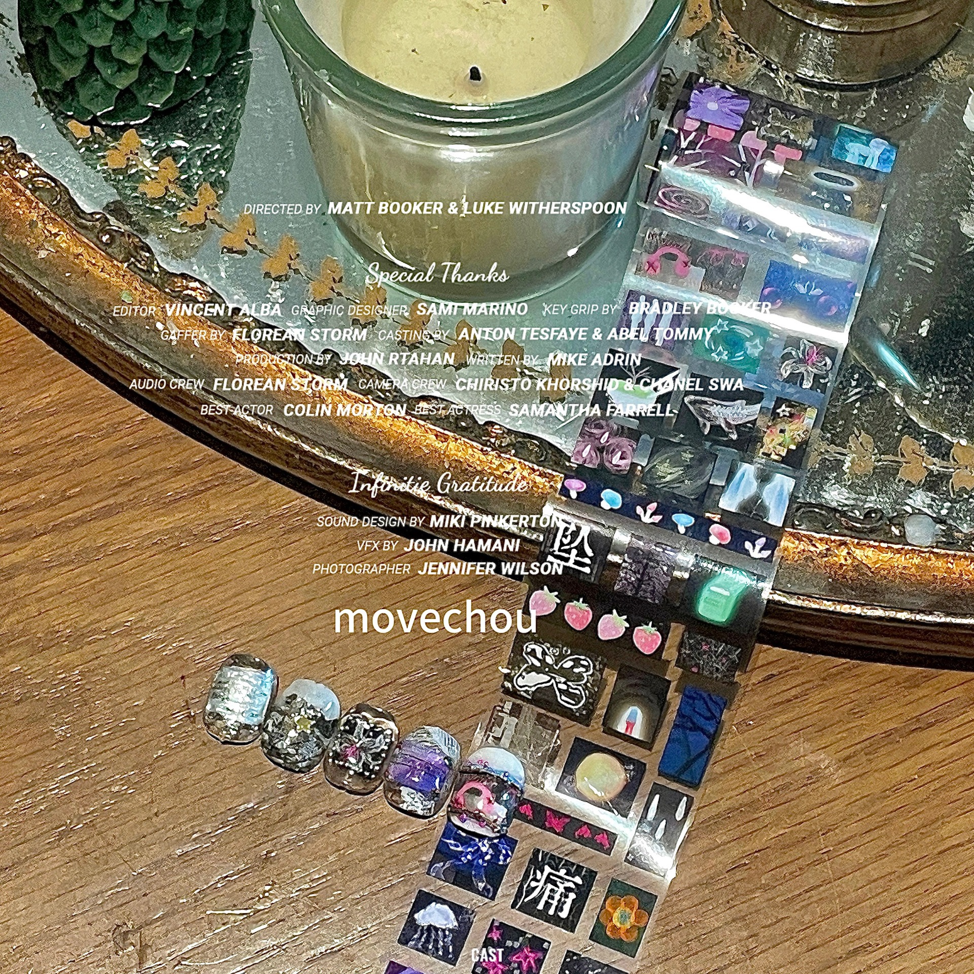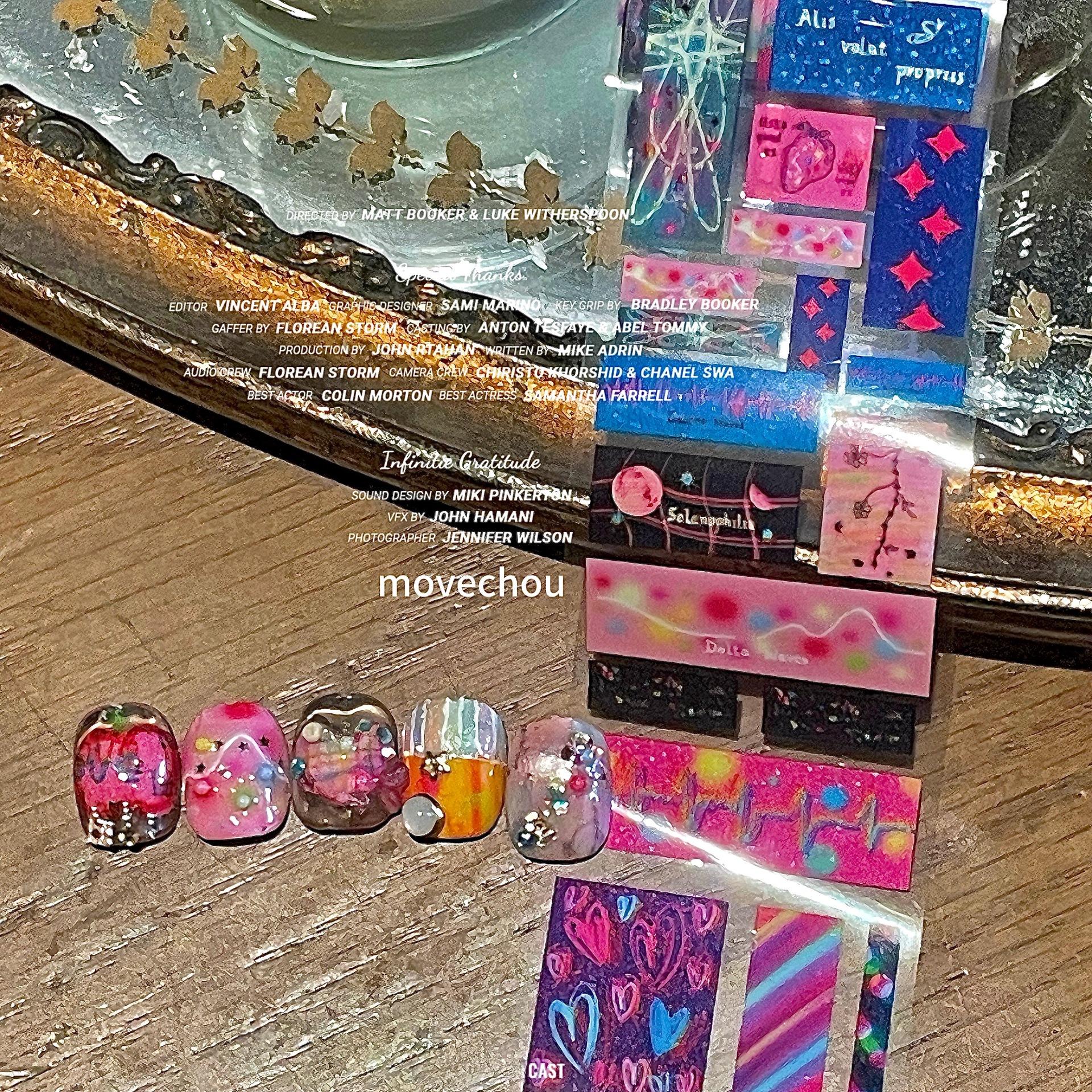 한국 스타일 맞춤형 극도로 화려한 여름 매니큐어 전사지 패치워크 테이프 분위기 있는 이세계 웨어러블 네일