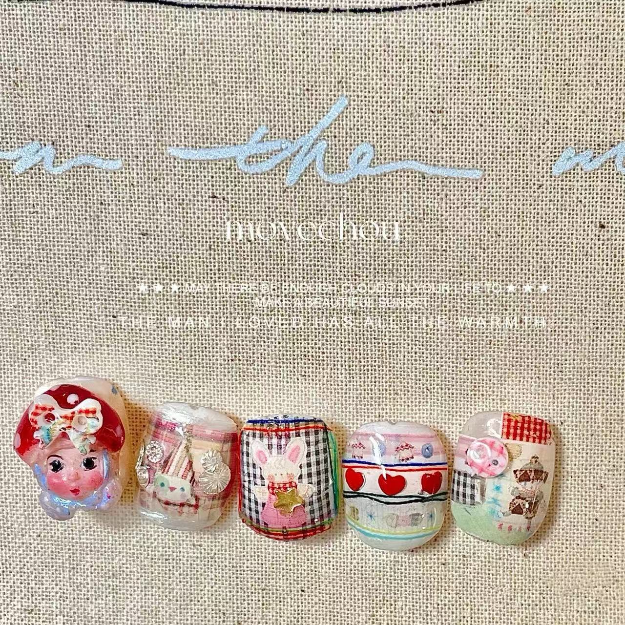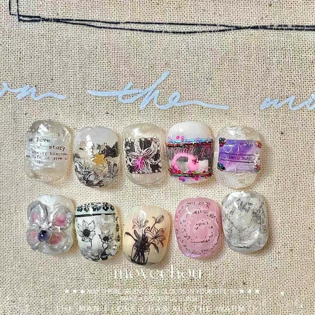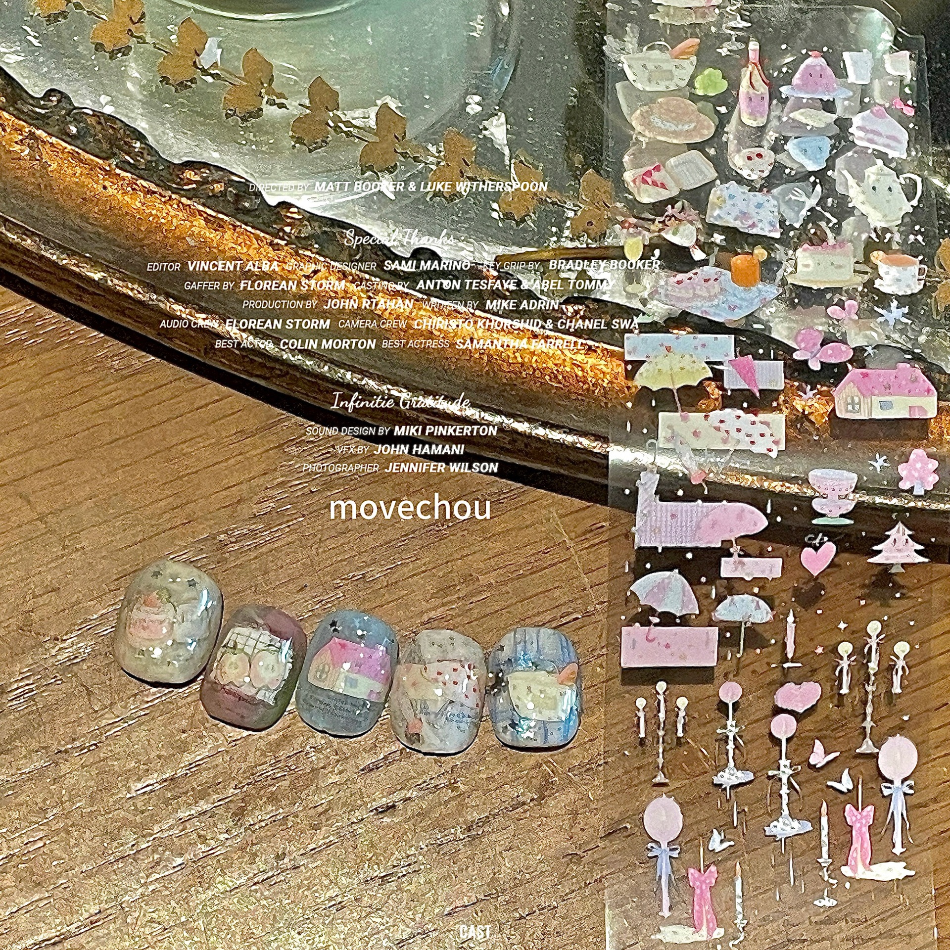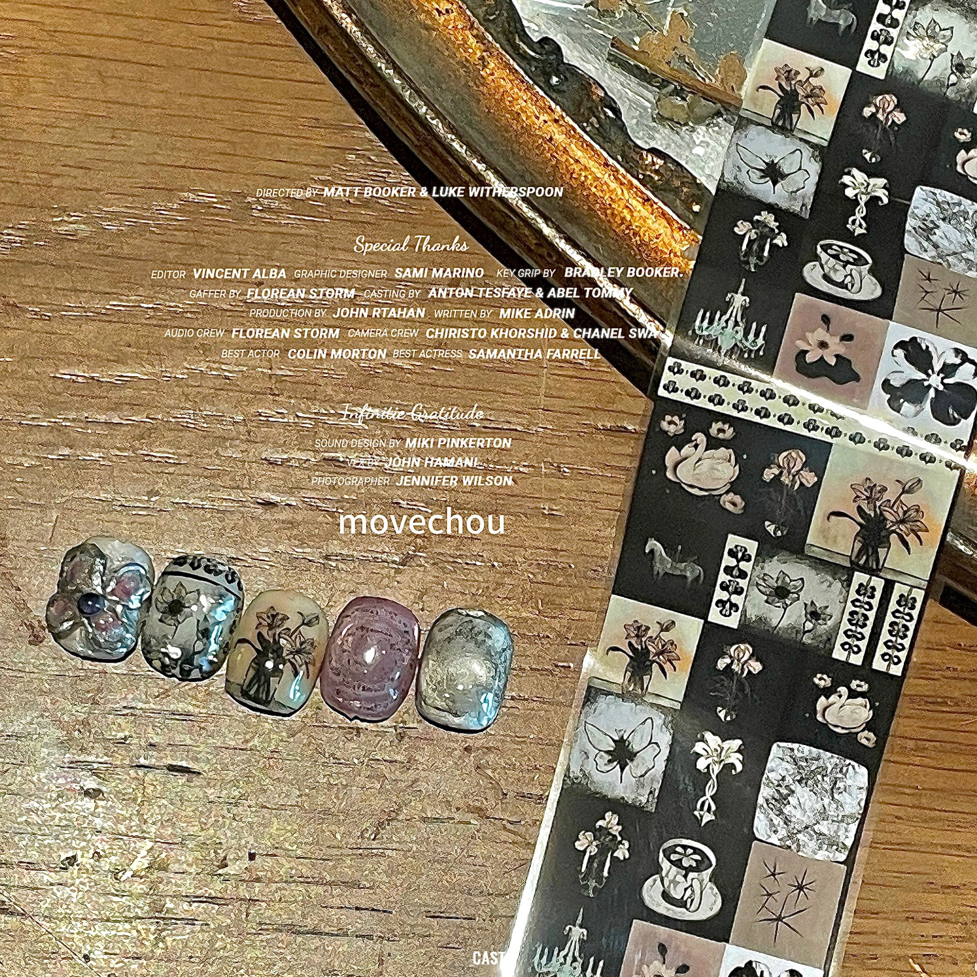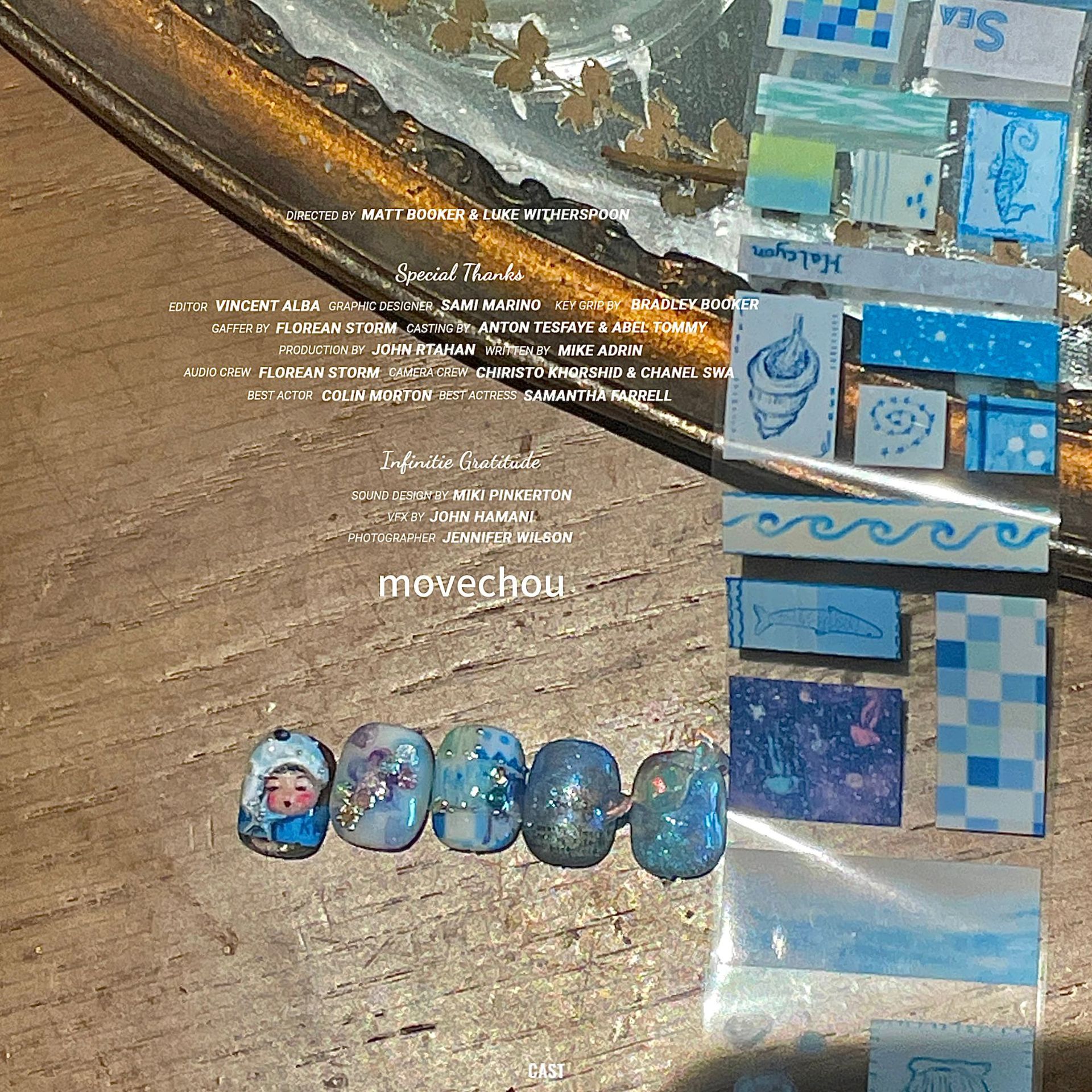 한국 스타일 맞춤형 극도로 화려한 여름 매니큐어 전사지 패치워크 테이프 분위기 있는 이세계 웨어러블 네일