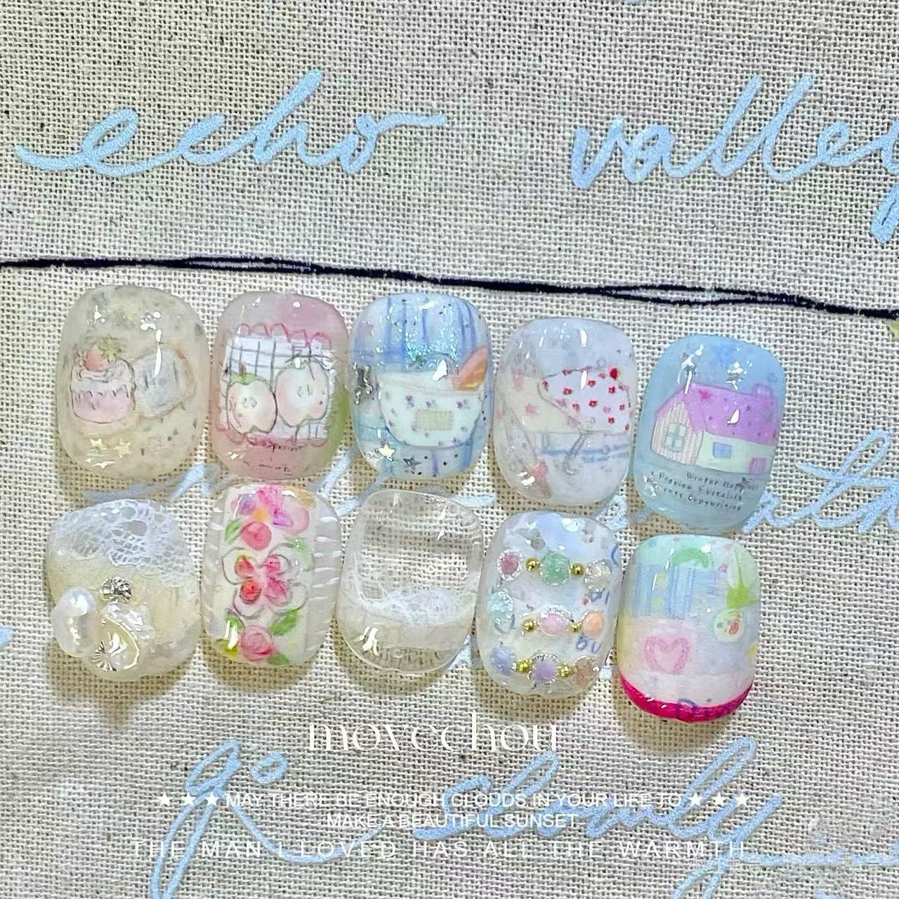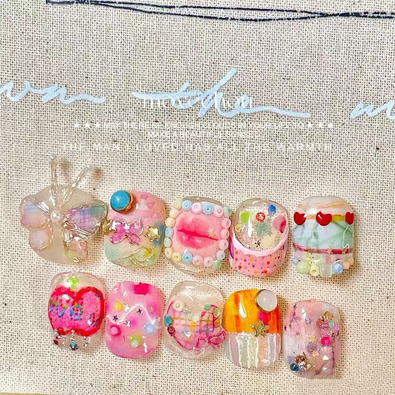 한국 스타일 맞춤형 극도로 화려한 여름 매니큐어 전사지 패치워크 테이프 분위기 있는 이세계 웨어러블 네일스토어 가기