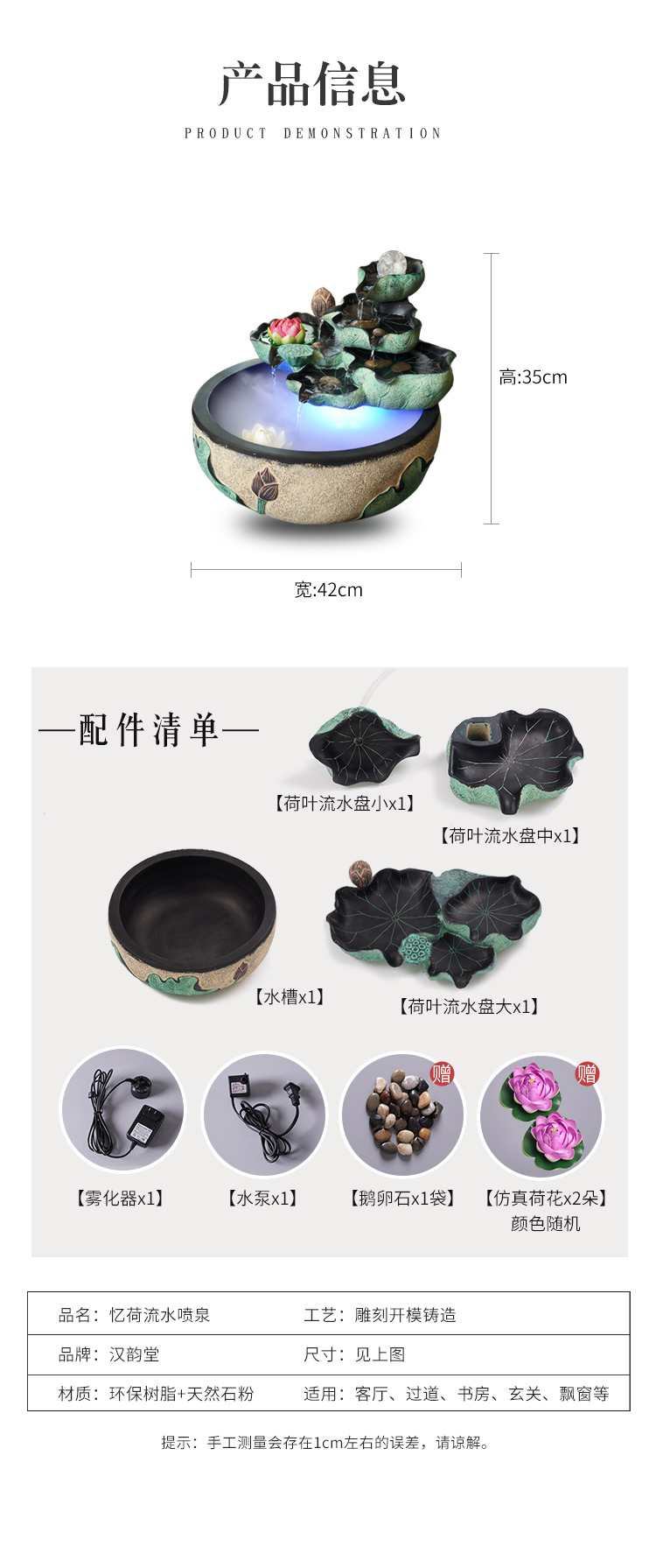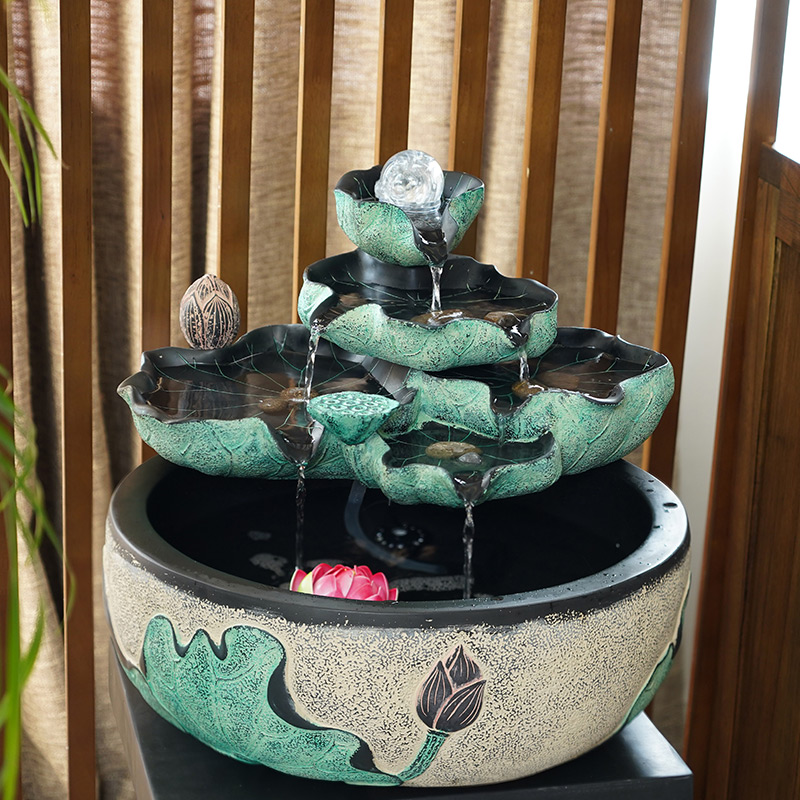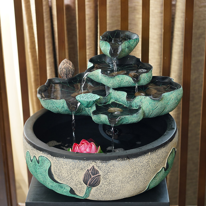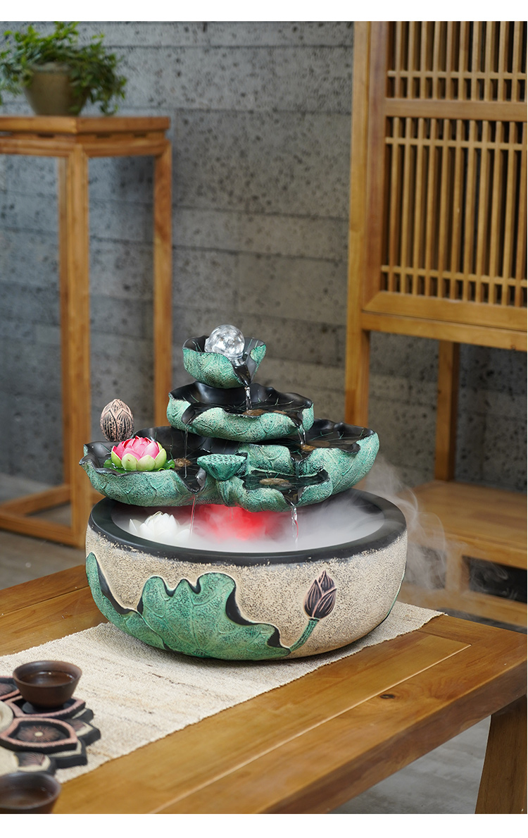 크리 에이 티브 분수 흐르는 물 장식품 풍수 공 워터 풍경 가습기 중국 스타일 풍수 휠 거실 데스크탑 작은 물고기 탱크