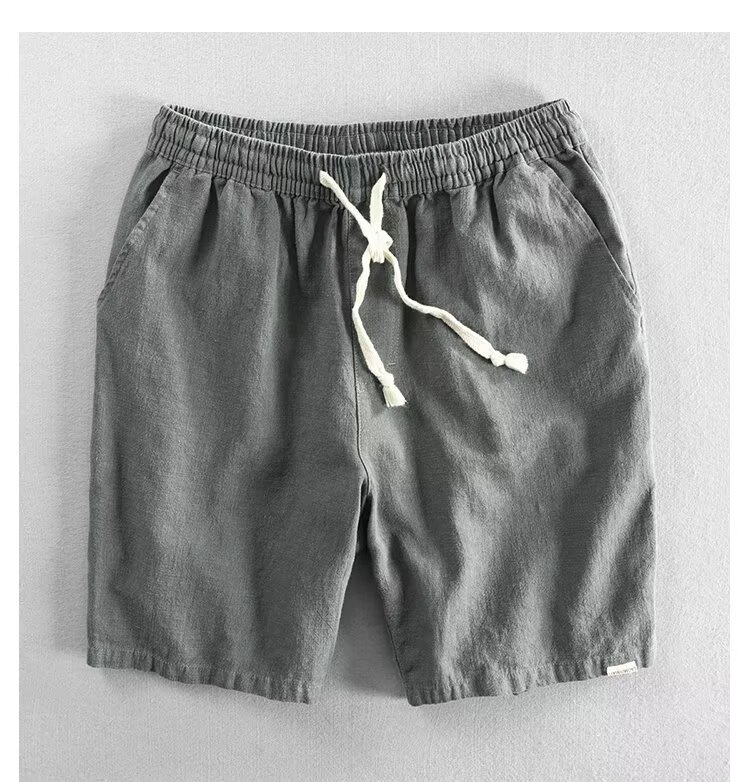 여름 가볍고 통기성이 뛰어난 모시 반바지 솔리드 컬러 심플 신축성 있는 드로스트링 린넨 코튼 비치 캐주얼 루즈 5점 크로스보더스토어 가기