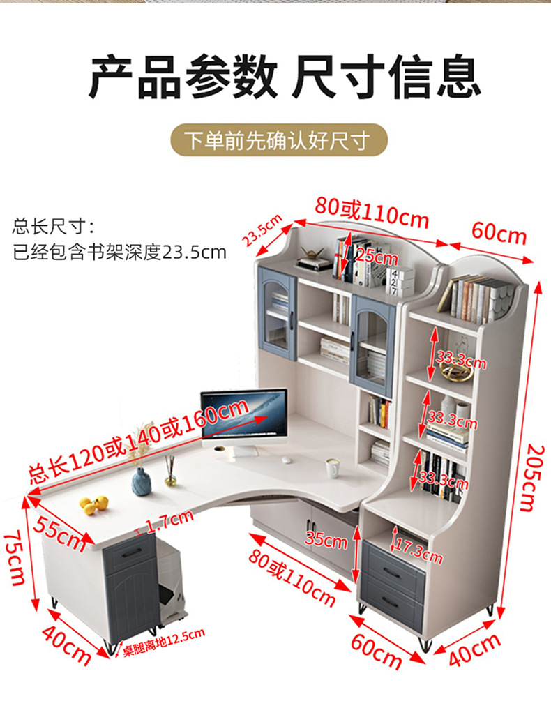 • J형 길이 120, 폭 80 싱글테이블, 길이 60 책장, 좌우 교환 가능) 포함