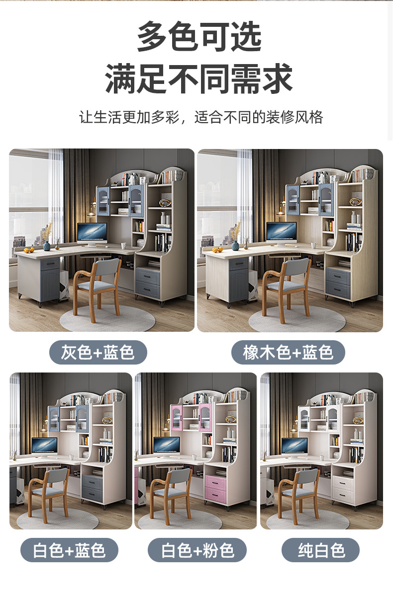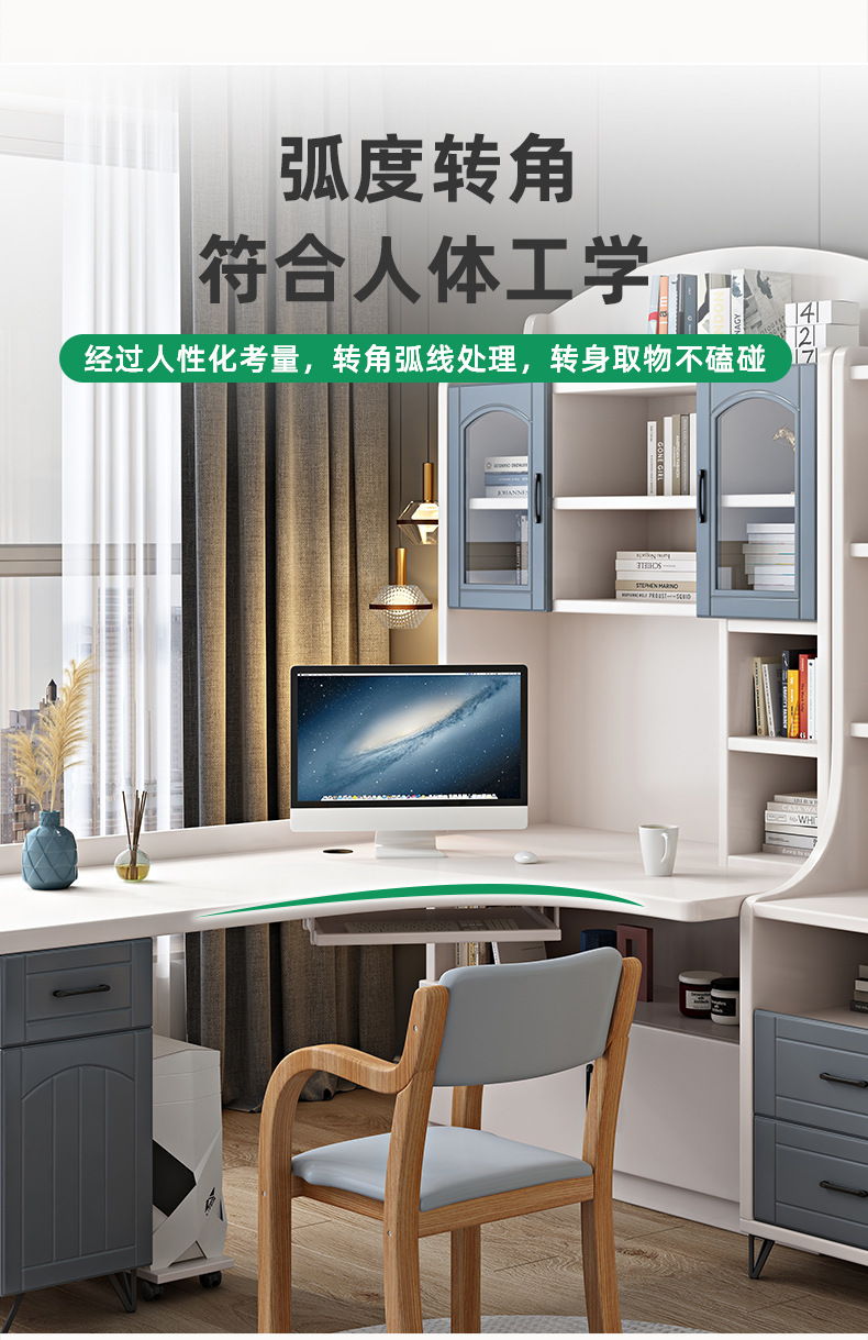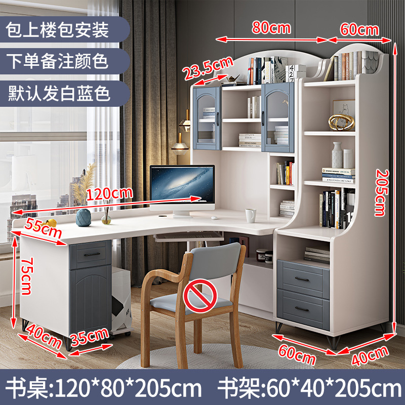 책상과 책장이 통합된 가정용 간단한 어린이 학습 테이블 책장이 있는 단단한 나무 책상 코너 데스크탑 컴퓨터 테이블스토어 가기