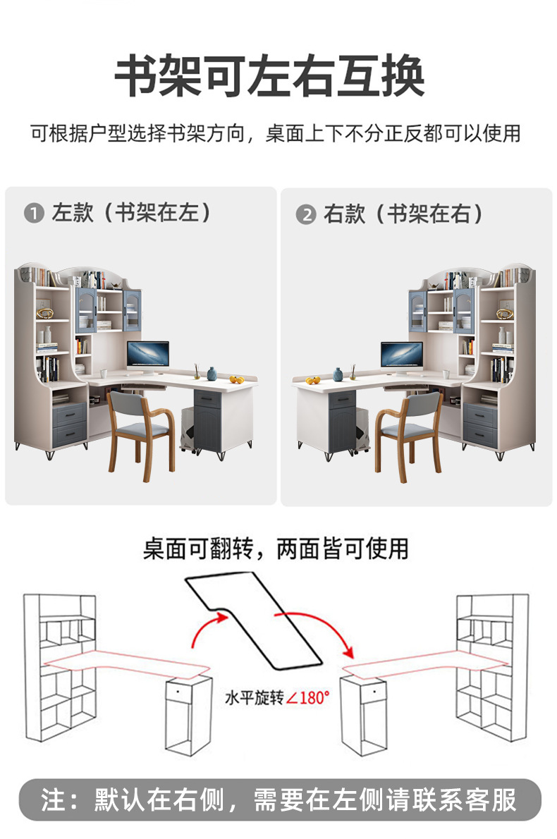 • J형 길이 120, 너비 80의 테이블과 의자 패키지, 길이 60의 책장, 좌우 교체 가능) 설치 포함