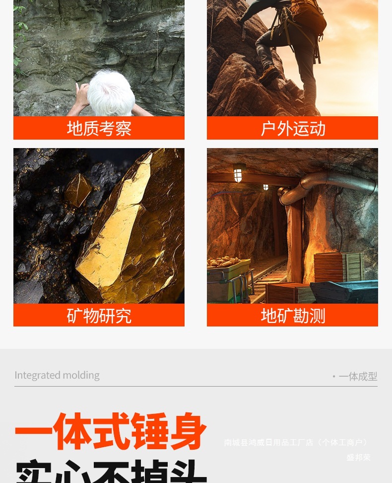 전문 등급 지질 망치, 탐사 망치, 판금 망치, 다기능 가정용 뾰족한 플랫 헤드 망치, 석재 채굴 및 등산 망치스토어 가기