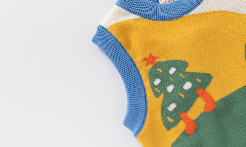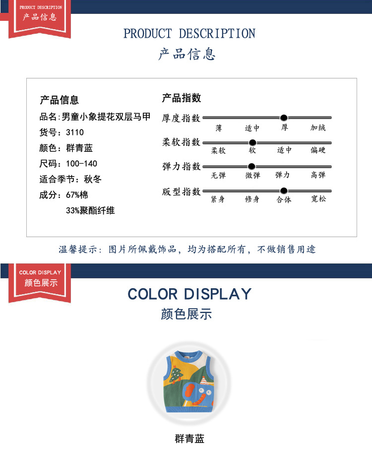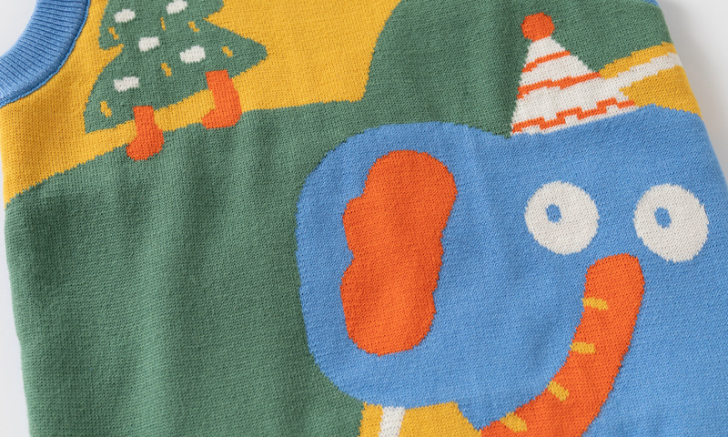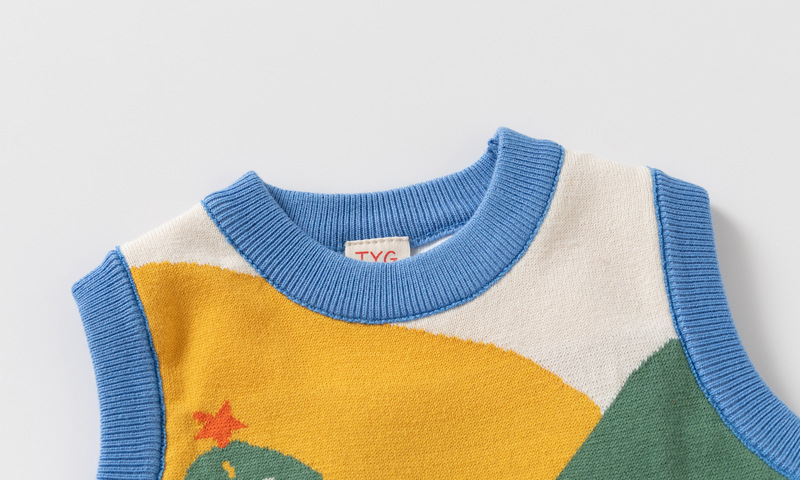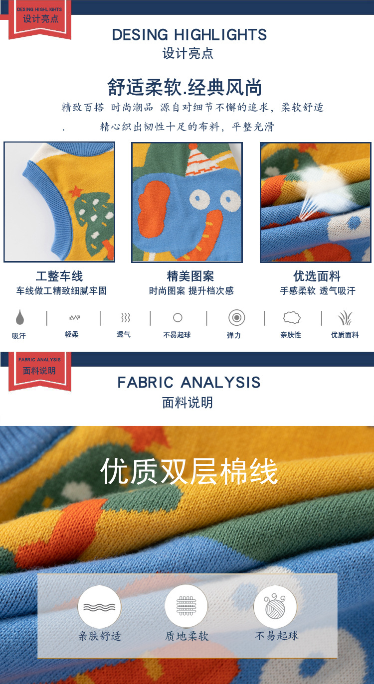 아동 의류 스웨터 조끼 드롭 배송 2025 가을 새로운 소년 더블 레이어 면화 만화 코끼리 라운드 넥 조끼