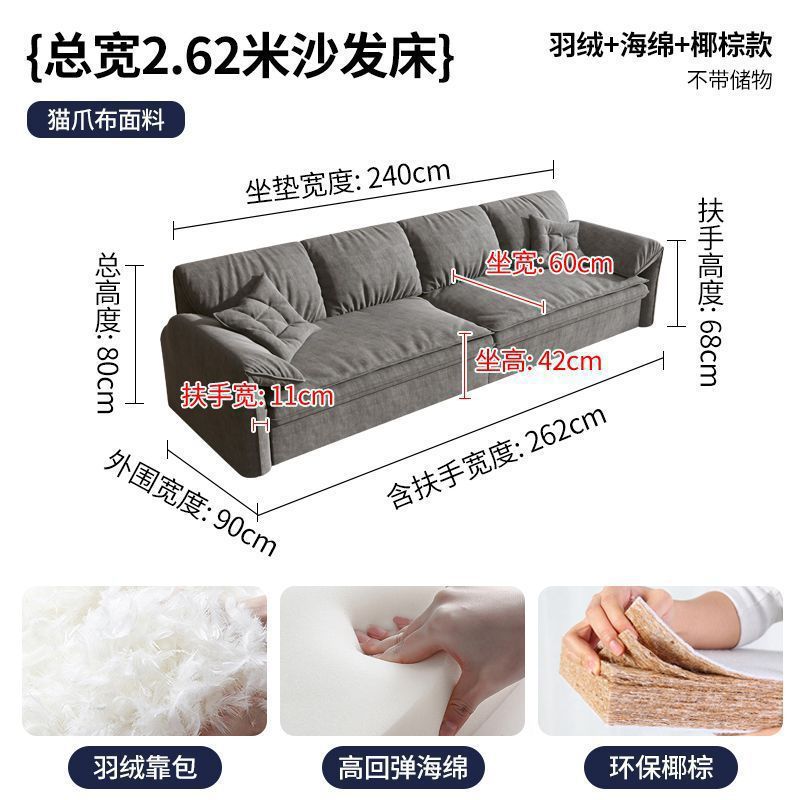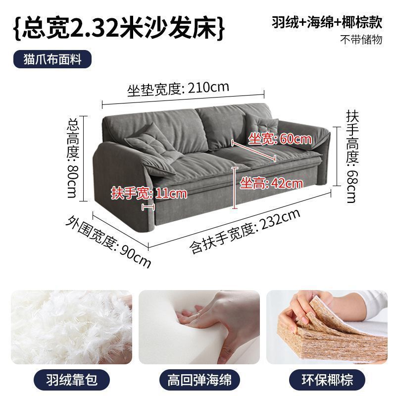 현대적인 미니멀리스트 소파 베드 작은 거실 다운 패브릭 소파 다기능 접이식 이중 목적 개폐식 스토리지